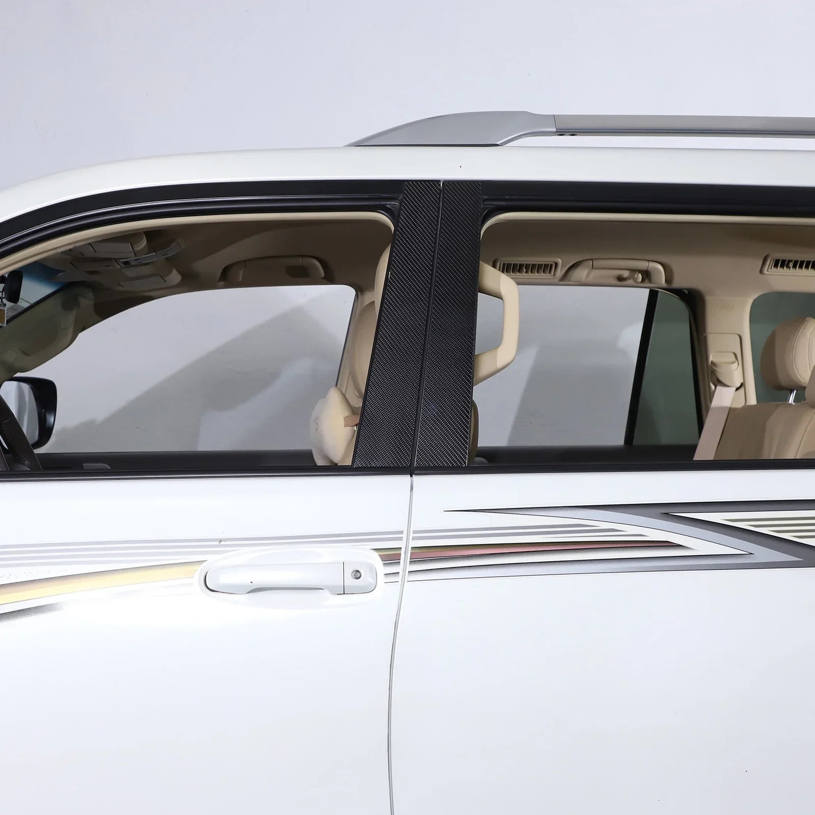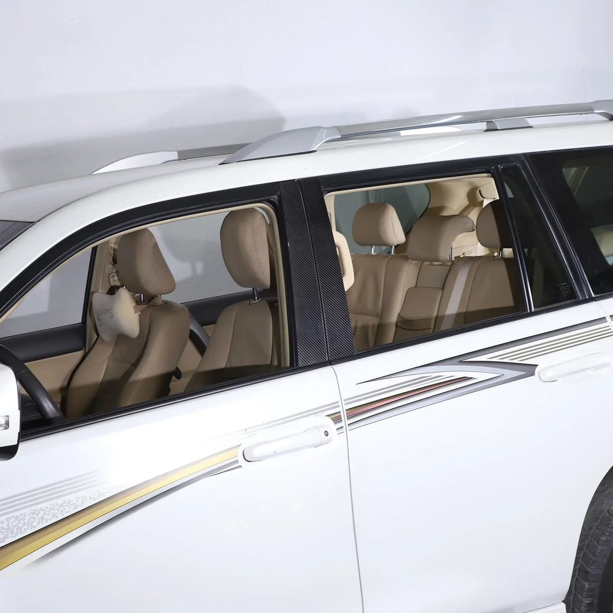 - Αναβαθμίστε την εμφάνιση του εσωτερικού του Prado σας προσθέτοντας μια ανθεκτική διακοσμητική λεπτομέρεια από ανθρακονήματα στους B-κολώνες.