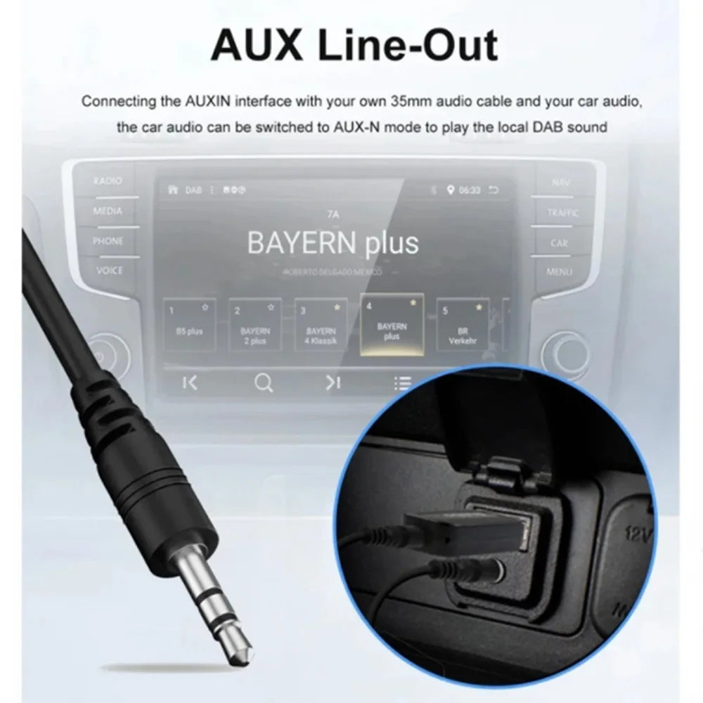 - Εύκολη ρύθμιση με AUX: Μεταδώστε το σήμα DAB+ στην είσοδο AUX του στερεοφωνικού σας—χωρίς εφαρμογή ή περίπλοκη ρύθμιση.
