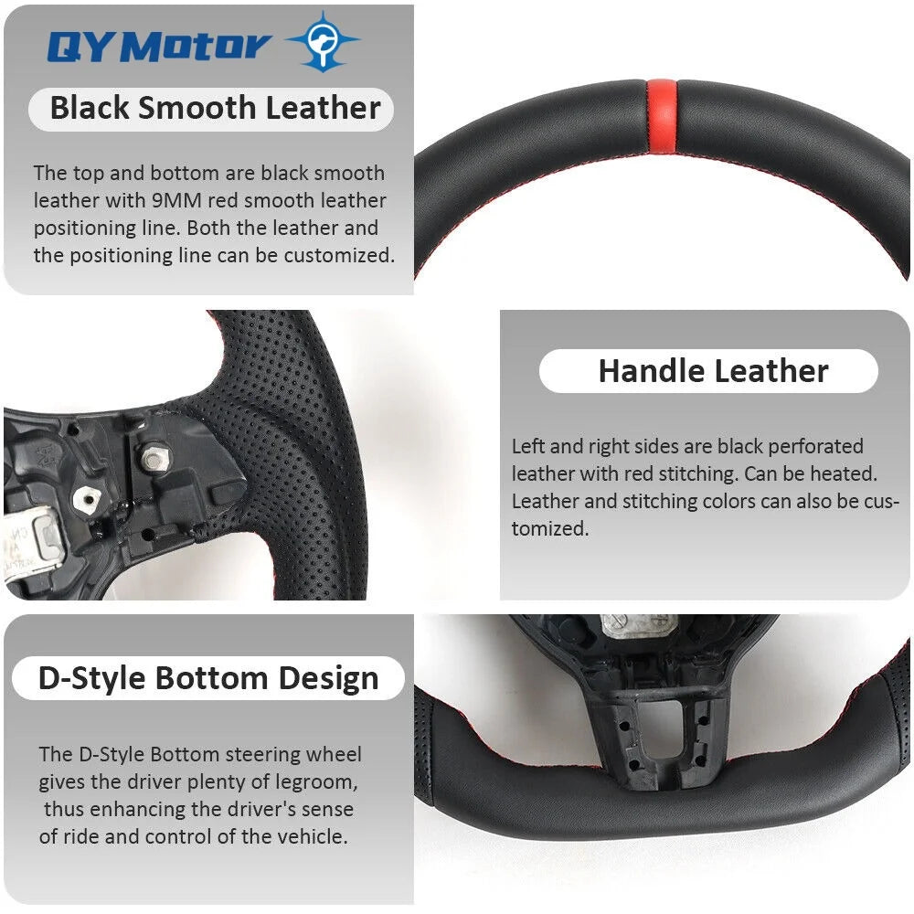 Αναβαθμίστε την εμπειρία σας με το VW Golf MK6 GTI με αυτό το 100% ολοκαίνουργιο δερμάτινο τιμόνι σχεδιασμένο για τα μοντέλα ετών 2008–2014. Με χαρακτηριστικό σχέδιο D-type αγωνιστικού τύπου με επίπεδο πάτο, συνδυάζει λείο δέρμα με διάτρητες λεπτομέρειες για σίγουρη λαβή, δυναμική αίσθηση και premium εμφάνιση εσωτερικού. Η εντυπωσιακή κόκκινη ραφή και η κόκκινη λωρίδα στις 12 προσθέτουν μια τολμηρή, εμπνευσμένη από τον αγώνα λεπτομέρεια, ενώ οι λαβές για τα δάχτυλα ενισχύουν την άνεση και τον έλεγχο κατά την οδήγηση. Σημειώστε ότι οι πεντάλ δεν περιλαμβάνονται και οι επενδύσεις, τα κουμπιά, οι αλλαγές ταχυτήτων και το καλώδιο δεν αποτελούν μέρος της συσκευασίας.