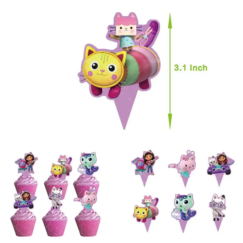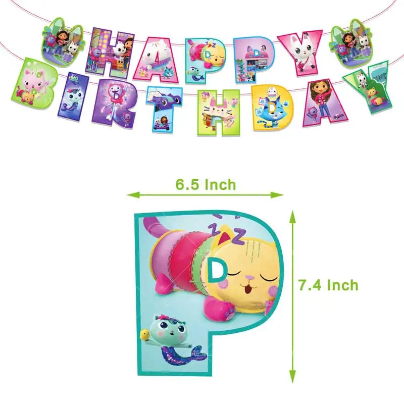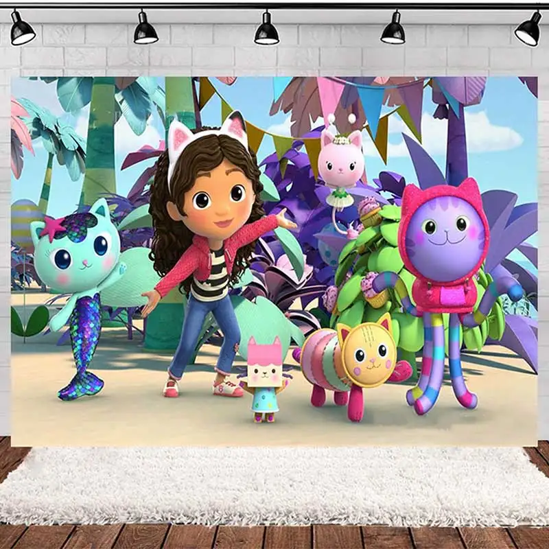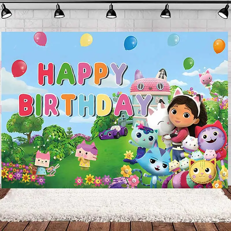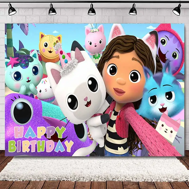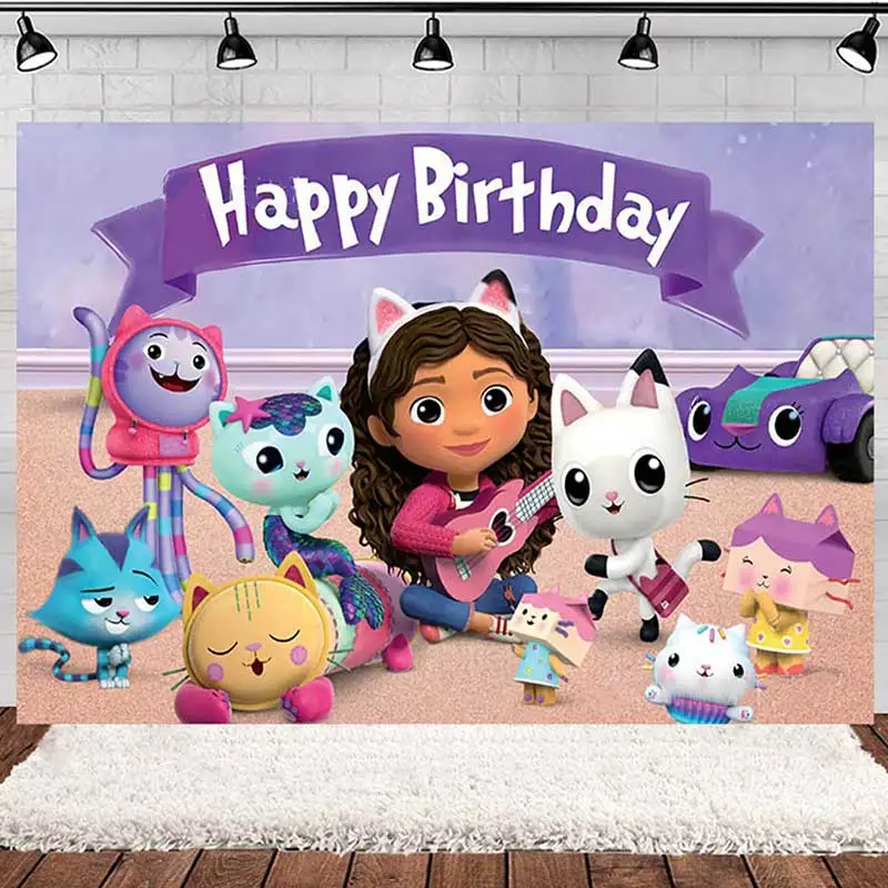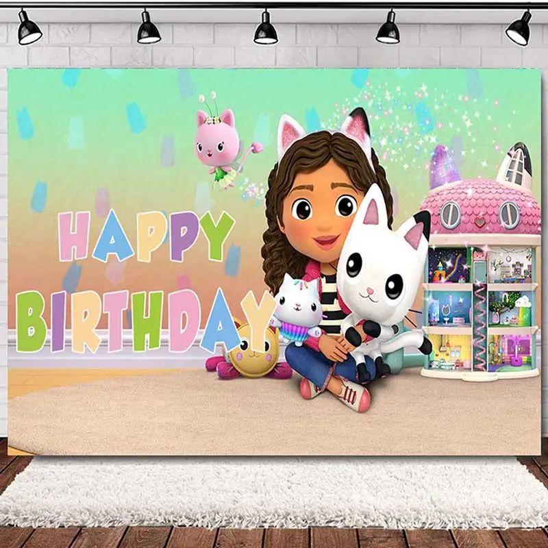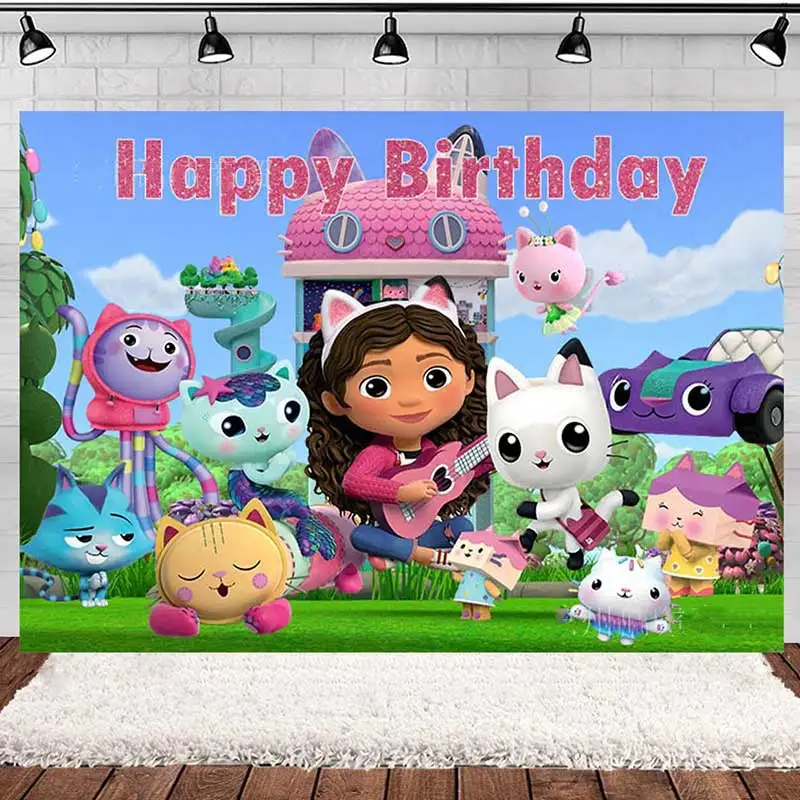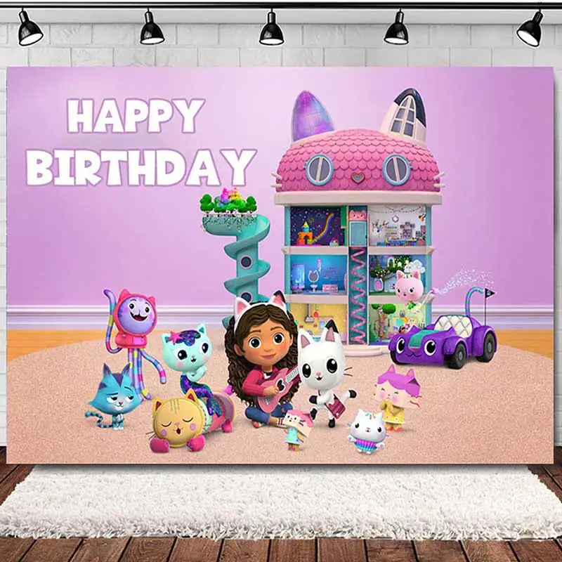 Gabbi Dollhouse Παρασκήνιο Κορίτσι Και Γάτα Προμήθειες Γενεθλίων πάρτι Πανό Παιδικό Κινούμενο Σχέδιο Μπαλόνι Διακόσμηση Φωτογραφικό Υπόβαθρο