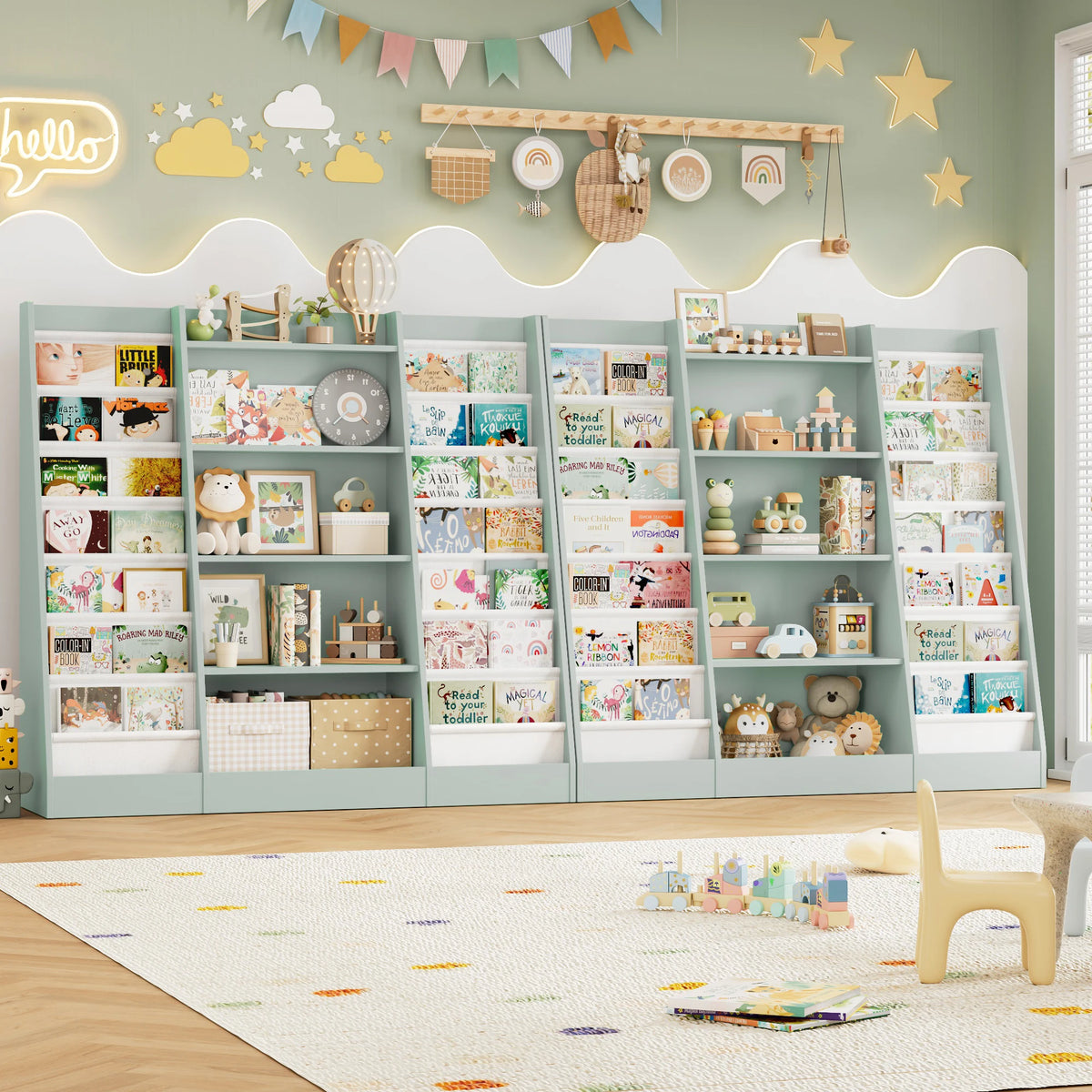 - Χρησιμοποιήστε τα 14 ράφια για να κατηγοριοποιήσετε τα βιβλία ανά είδος, μέγεθος ή αναγνώστη· κρατήστε τα εικονογραφημένα βιβλία στα χαμηλότερα επίπεδα και τα μακρύτερα βιβλία ψηλότερα για εύκολη πρόσβαση.