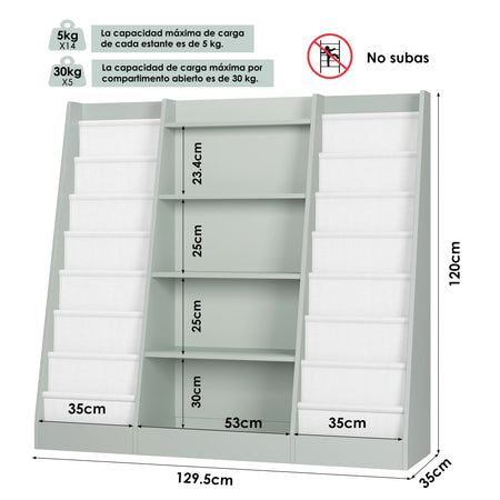 Γνωρίστε τη Βιβλιοθήκη Παιδικών Βιβλίων Getone με 14 Ράφια, μια λειτουργική και κομψή λύση αποθήκευσης σχεδιασμένη για πολυάσχολα παιδικά δωμάτια. Σε φρέσκο λευκό φινίρισμα (διαθέσιμο επίσης σε γκρι-πράσινο), αυτή η ψηλή, στιβαρή ξύλινη βιβλιοθήκη τραβάει το βλέμμα ενώ κρατά τα βιβλία, τα παιχνίδια και τα ρούχα τακτοποιημένα οργανωμένα. Με 14 ράφια συν ένα μεγάλο ανοιχτό κεντρικό διαμέρισμα, προσφέρει άφθονο χώρο για να μεγαλώσει με το παιδί σας και να μειώσει την ακαταστασία σε δωμάτια μελέτης, γωνιές ανάγνωσης, παιδότοπους, σαλόνια, υπνοδωμάτια και διαδρόμους. Κατασκευασμένη με γνώμονα την ασφάλεια, διαθέτει στρογγυλεμένες γωνίες και σχεδιασμό ασφαλή κατά την κλίση για να βοηθά στην αποτροπή ανατροπής κατά το παιχνίδι. Ιδανική για τη δημιουργία μιας αφιερωμένης γωνιάς ανάγνωσης ή χώρου εργασίας όπου τα παιδιά μπορούν να φτάνουν τα δικά τους βιβλία, ενώ εσείς διατηρείτε έναν τακτοποιημένο, ήρεμο χώρο.