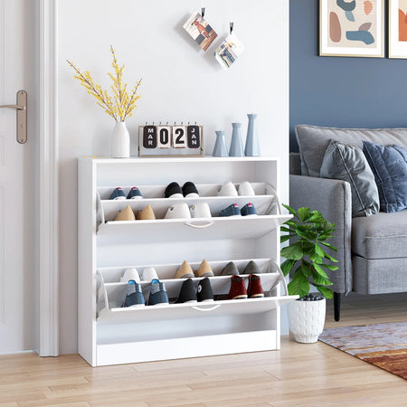 Γνωρίστε το Getone White Narrow 2 Door Shoe Cabinet Hallway Storage—μια κομψή, εξοικονομούσα χώρο λύση σχεδιασμένη να αντιμετωπίζει την ακαταστασία και να κρατά τα υποδήματα τακτοποιημένα οργανωμένα. Σε καθαρό λευκό, αυτή η μοντέρνα ξύλινη ντουλάπα ταιριάζει σε στενούς διαδρόμους ή γωνίες σαλονιού, προσφέροντας δύο ανακλινόμενες πόρτες και ένα σύστημα αποθήκευσης δύο επιπέδων. Όταν κλείνει, γίνεται μια στιλάτη ντουλάπα που μειώνει τις οσμές και την οπτική ακαταστασία. Ο σχεδιασμός αποτρέπει την παραμόρφωση των παπουτσιών, βοηθώντας κάθε ζευγάρι να διατηρείται σε καλή κατάσταση ενώ απολαμβάνετε ένα τακτοποιημένο σπίτι.