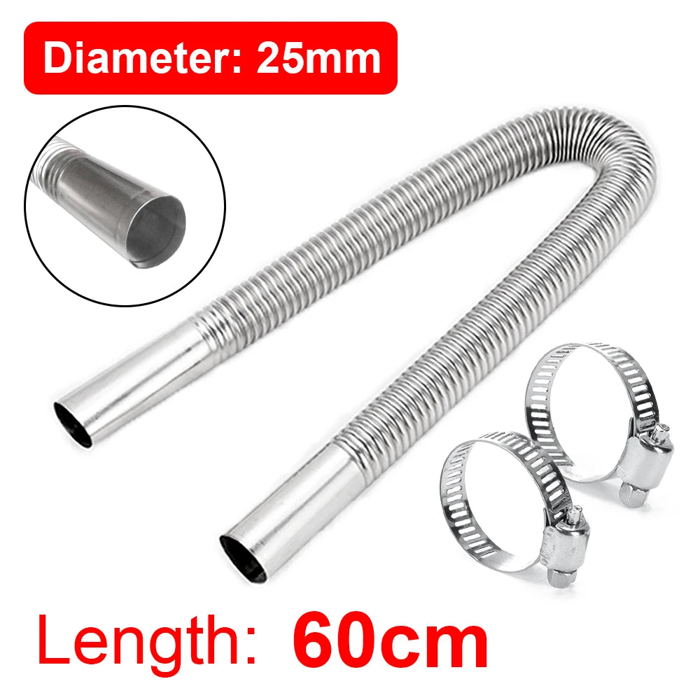 Ο σχεδιασμός διαθέτει μια σφιχτή διεπαφή για να αποτρέπει τη διαρροή καυσαερίων, διατηρώντας τον αέρα στην καμπίνα φρέσκο και μειώνοντας τις οσμές. Η ευέλικτη κατασκευή του σας επιτρέπει να λυγίζετε τον σωλήνα ώστε να ταιριάζει με τη γωνία εγκατάστασής σας, κάνοντάς τον ιδανικό για στενές μηχανές, ποικιλία μοντέλων οχημάτων και διάφορα περιβάλλοντα. Είναι ευρέως συμβατός με δημοφιλείς μάρκες θερμαντήρων όπως οι Eberspächer, Webasto και άλλοι κινέζικοι θερμαντήρες πετρελαίου, αποτελώντας μια ευέλικτη, έτοιμη προς χρήση λύση για πολλές ρυθμίσεις.