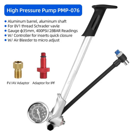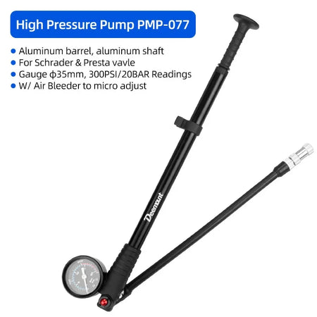 Η αντλία ποδηλάτου υψηλής πίεσης με μετρητή για μπροστινές αναρτήσεις Schrader από την DEEMOUNT είναι ένα αξιόπιστο, υψηλής απόδοσης εργαλείο σχεδιασμένο για ακριβή ρύθμιση ανάρτησης. Κατασκευασμένη από ανθεκτικό αλουμίνιο, αυτή η αντλία προσφέρει σταθερή, άνετη λειτουργία για να ρυθμίσετε με σιγουριά την πίεση της μπροστινής και της πίσω σακούλας. Ένας γρήγορος αεραγωγός και ένας σωλήνας που περιστρέφεται 360° ελαχιστοποιούν τις διαρροές και διευκολύνουν την πρόσβαση στη βαλβίδα, είτε βρίσκεστε στο μονοπάτι είτε στο εργαστήριο. Ο μεγάλος μετρητής 300/400 PSI, η μικρο-ρύθμιση της βαλβίδας απελευθέρωσης αέρα και η ειδική μύτη Schrader (συμπεριλαμβάνεται προσαρμογέας FV) σας δίνουν ακριβή έλεγχο για συνεπή βύθιση και αίσθηση οδήγησης. Κατασκευασμένη για μακροχρόνια ανθεκτικότητα και αξιοπιστία κατά την οδήγηση, είναι έτοιμη να αντέξει διαδρομή μετά από διαδρομή. Παρέχοντας ποιότητα και αξιόπιστη εξυπηρέτηση από το 2002 στο intercyprus.com.