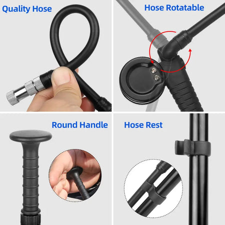 - Εκμεταλλευτείτε τον σωλήνα που περιστρέφεται 360° και τη γρήγορη κλείσιμο αεραγωγού για γρήγορες, καθαρές συνδέσεις βαλβίδας και ελάχιστη διαρροή αέρα, είτε στο μονοπάτι είτε στο εργαστήριο.