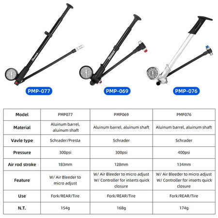 Υψηλής Πίεσης Αντλία Ποδηλάτου Με Μανόμετρο Για Μπροστινές Ανάρτησεις Schrader