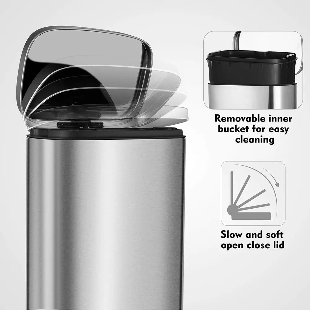 Γνωρίστε τον Κάδο Απορριμμάτων Homfa 30L από Ανοξείδωτο Ατσάλι με Απαλό Κλείσιμο — μια κομψή, ανθεκτική λύση απορριμμάτων σχεδιασμένη για πολυσύχναστες κουζίνες, μπάνια, υπνοδωμάτια και γραφεία. Κατασκευασμένος από υψηλής ποιότητας ανοξείδωτο ατσάλι με αφαιρούμενο εσωτερικό κουβά, αυτός ο ορθογώνιος κάδος συνδυάζει ένα μοντέρνο βουρτσισμένο φινίρισμα με πρακτική απόδοση. Η χωρητικότητα των 30 λίτρων είναι ιδανική για καθημερινή χρήση, βοηθώντας να διατηρούνται οι χώροι τακτοποιημένοι και οι οσμές περιορισμένες.
