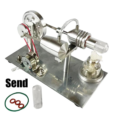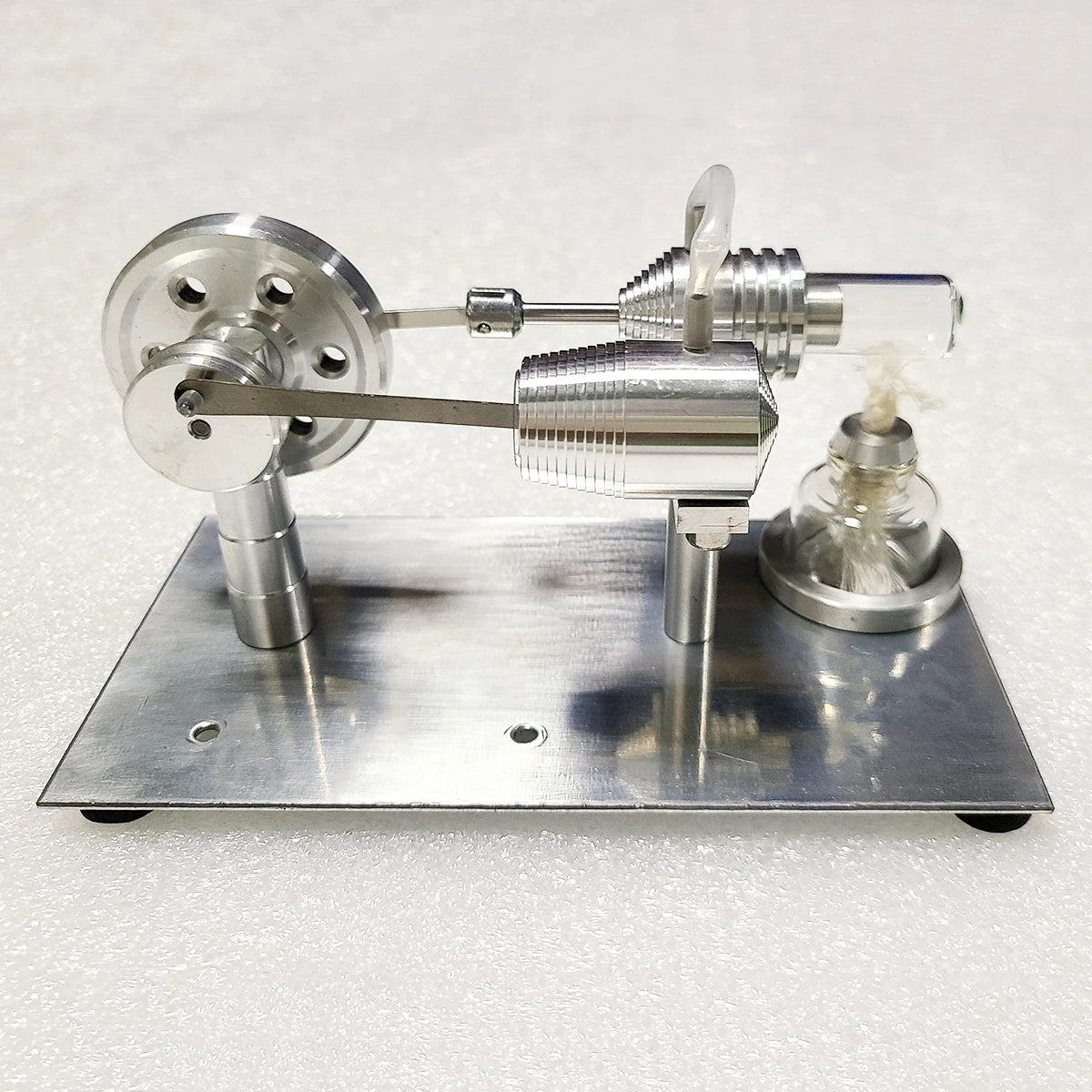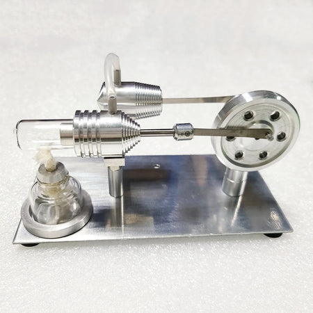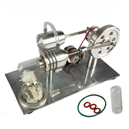 - Δείτε την πραγματική θερμοδυναμική σε δράση: περιστρέψτε τον τροχό χειροκίνητα για να επαληθεύσετε την ομαλή κίνηση πριν τη λειτουργία, στη συνέχεια ανάψτε το αλκοολικό λυχνίο και παρατηρήστε τον κινητήρα να αρχίζει να περιστρέφεται μετά τη θέρμανση.