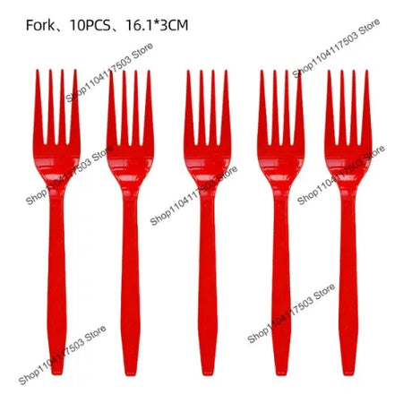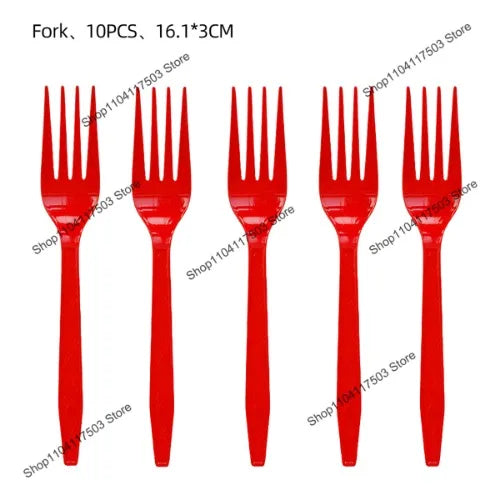 Η συσκευασία περιλαμβάνει μια ποικιλία από αναλώσιμα σκεύη, ιδανικά για σερβίρισμα σνακ, γλυκών ή οποιωνδήποτε λιχουδιών του πάρτι. Βεβαιωθείτε ότι θα τα απορρίψετε σωστά μετά τη χρήση για να βοηθήσετε στη διατήρηση ενός καθαρού περιβάλλοντος.
