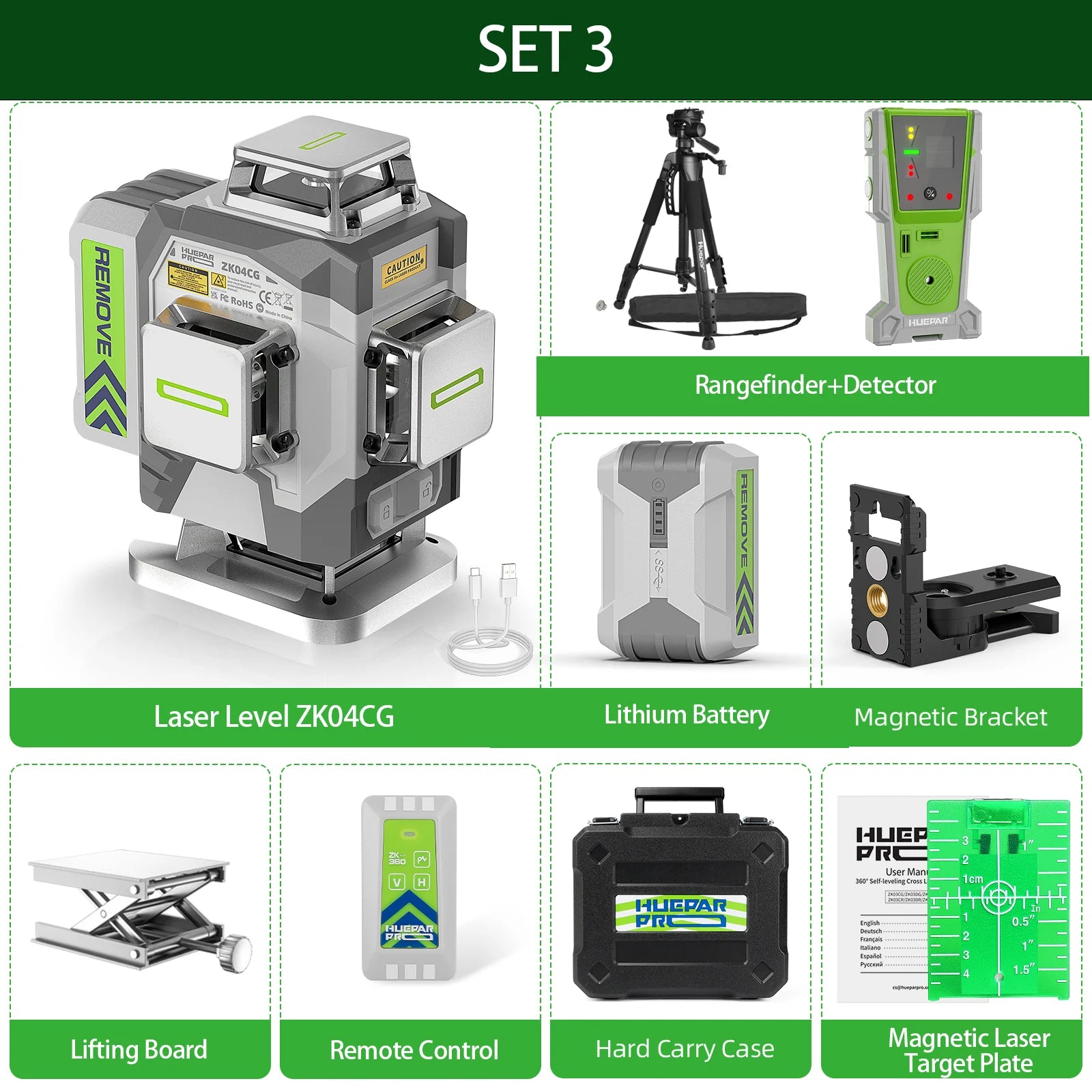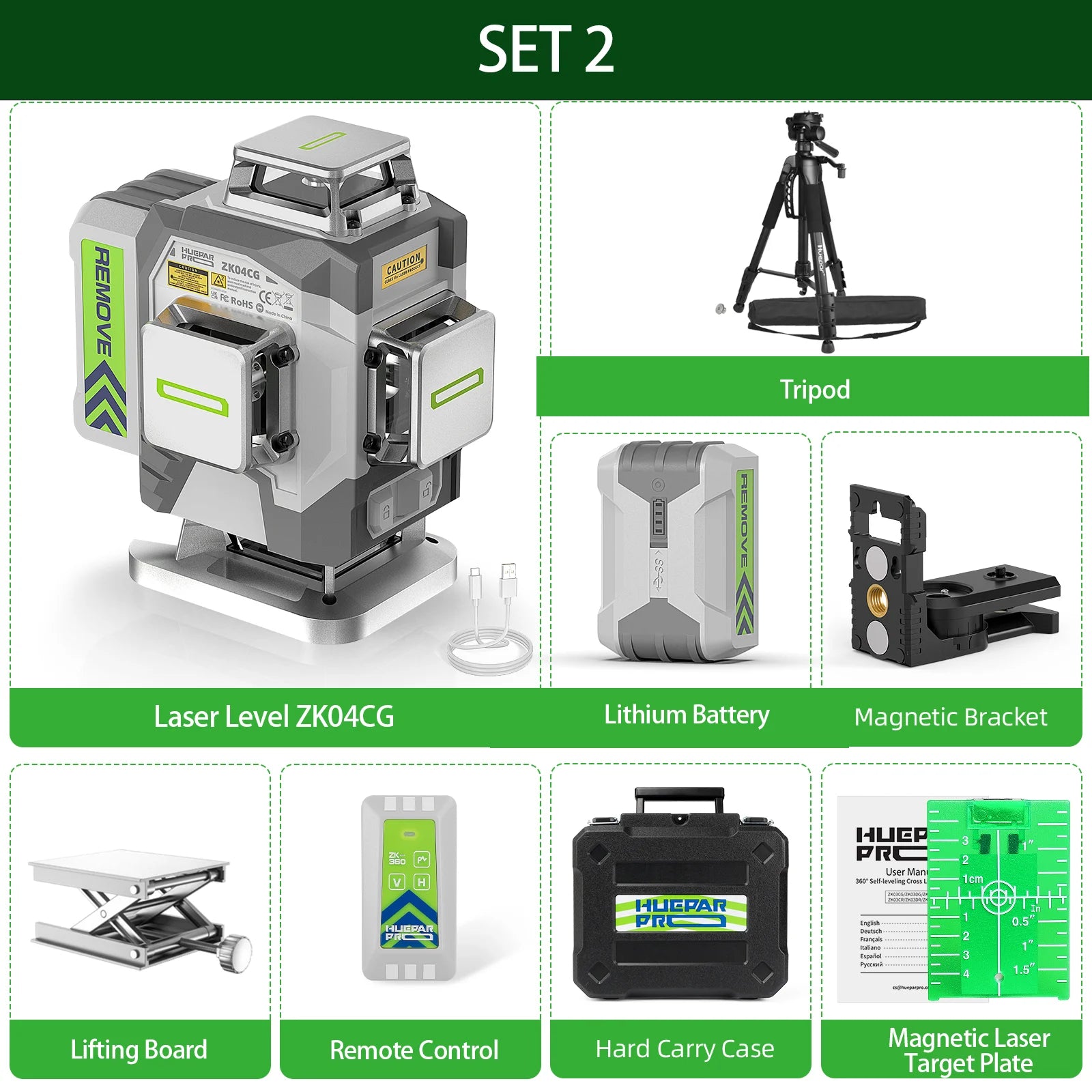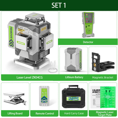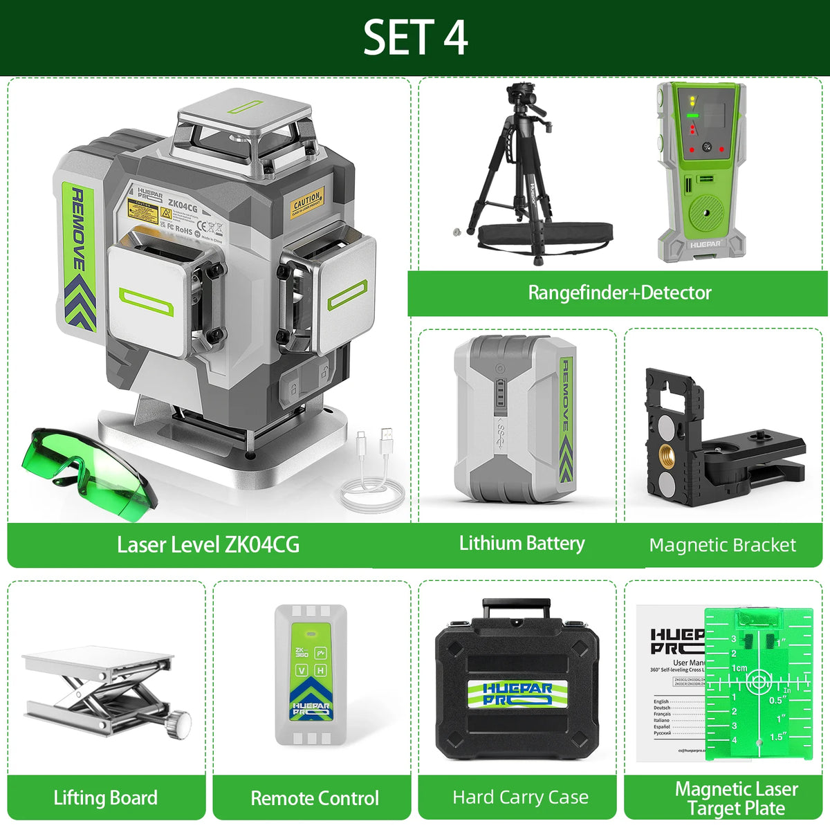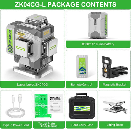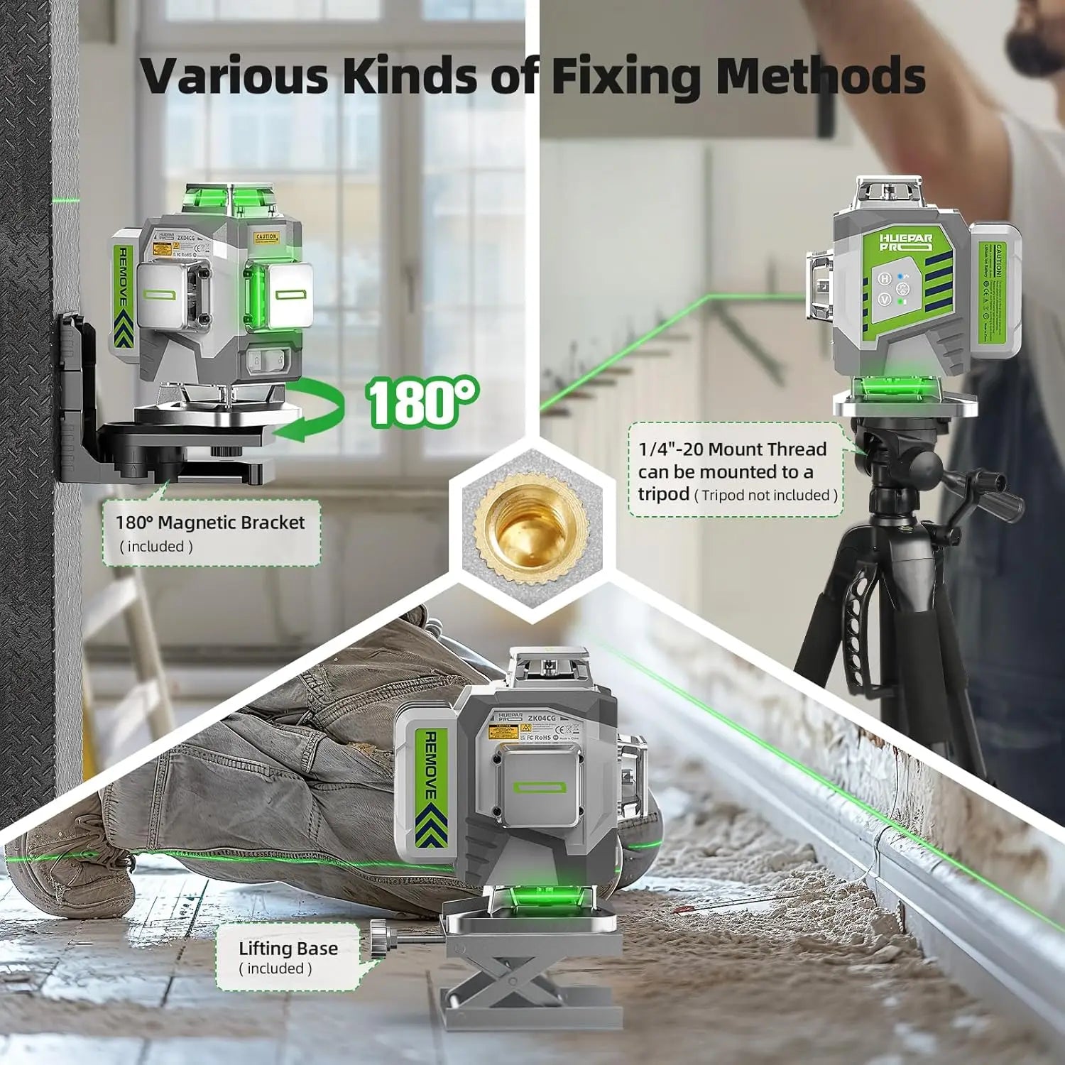 Huepar 4D Σταυρός Γραμμής Λέιζερ με 16 Πράσινες Ακτίνες, 2mm Ακρίβεια, 8000mAh