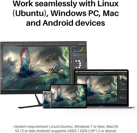 - Παρακαλώ βεβαιωθείτε ότι η θύρα USB-C της συσκευής σας υποστηρίζει USB 3.1 Gen1 και DP 1.2 ή υψηλότερα αν σκοπεύετε να χρησιμοποιήσετε σύνδεση USB-C σε USB-C.