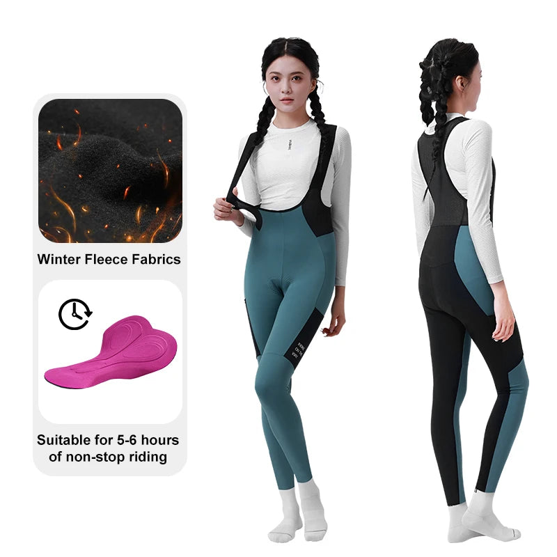Χειμερινό Παντελόνι Ποδηλασίας με Τιράντες για Γυναίκες με Επένδυση από Φλις, Πολυεστέρας Σπάντεξ, Τσέπες