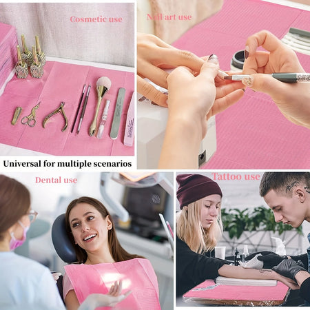 - Διατηρήστε τις επιφάνειες καθαρές: Τα αδιάβροχα, μίας χρήσης μαντήλια προστατεύουν τα ρούχα και τις επιφάνειες εργασίας από την υγρασία, μελάνι και υγρά κατά τη διάρκεια τατουάζ ή οδοντιατρικών εργασιών.