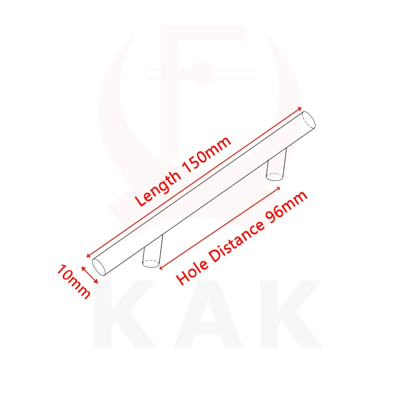 Το προφίλ T-bar διαμέτρου 10mm προσφέρει άνετη λαβή και μια σύγχρονη ευρωπαϊκή αίσθηση που ταιριάζει καλά με τόσο κλασικά όσο και μοντέρνα διακοσμητικά. Η κατασκευή από κενό σωλήνα με λέιζερ εξασφαλίζει μια κομψή σιλουέτα ενώ διατηρεί το βάρος διαχειρίσιμο. Αυτό το pull κατασκευάζεται από την KAK στην Ηπειρωτική Κίνα, εξασφαλίζοντας συνεπή ποιότητα σε κάθε κομμάτι.