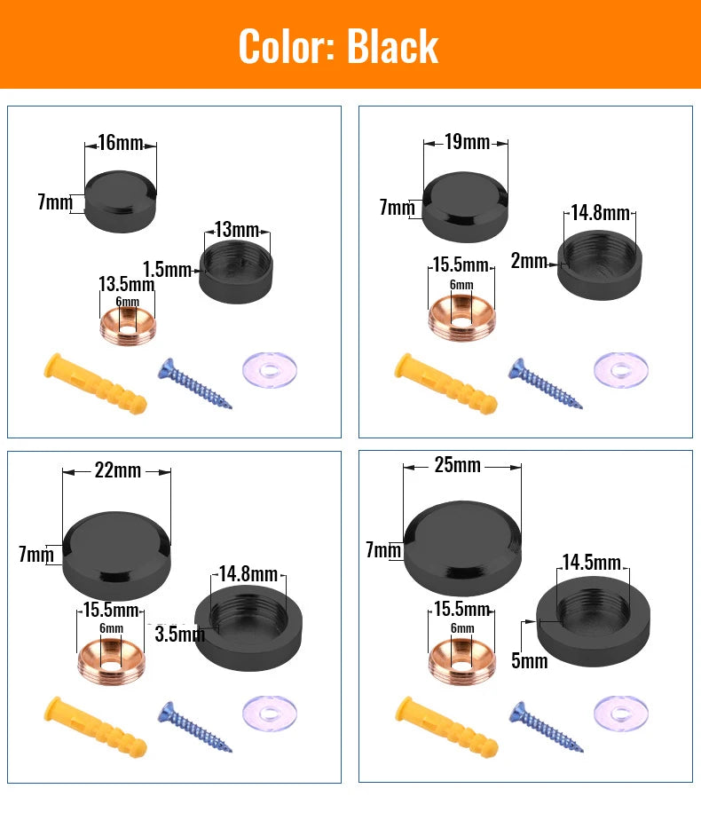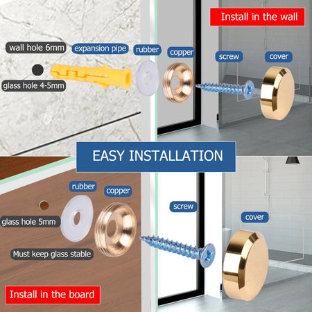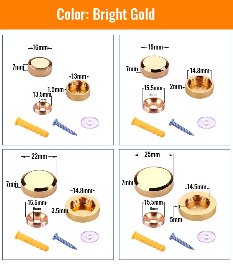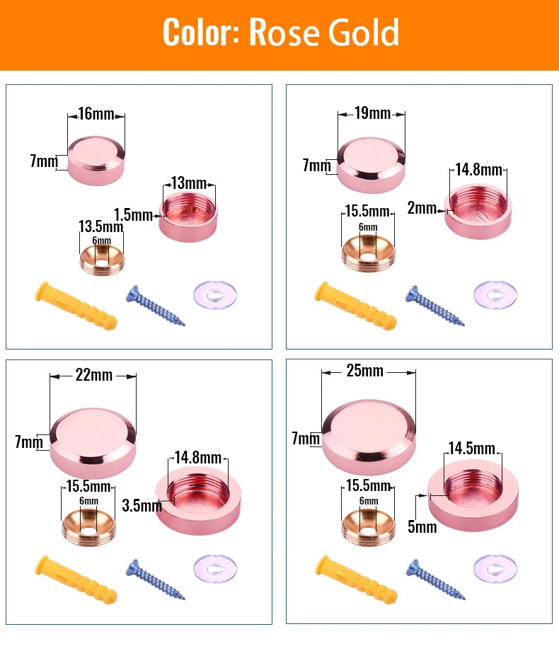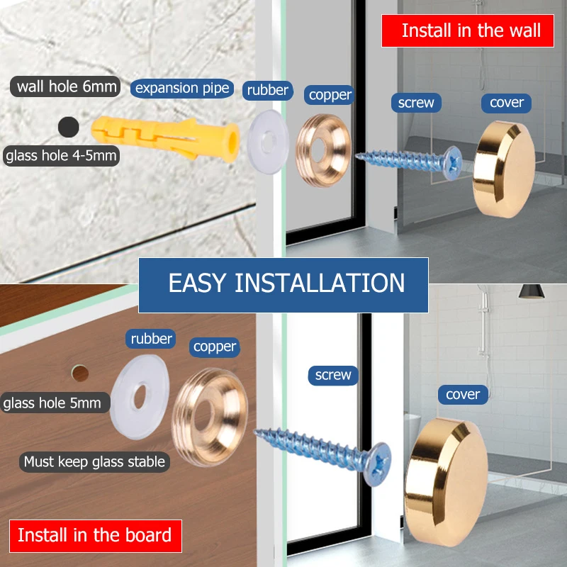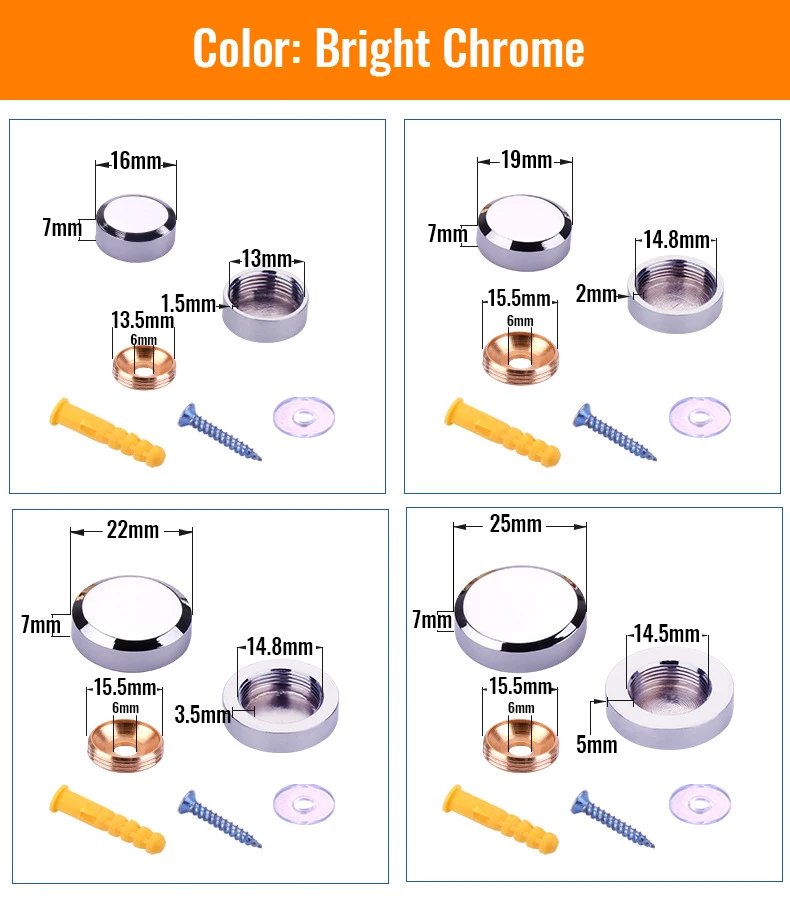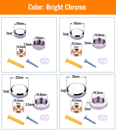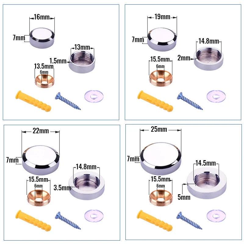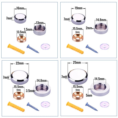 KAK 4PCS Διακοσμητικά Καρφιά Πινακίδας Γυάλινες Στερεώσεις Βίδες Στερέωσης Καθρέφτη Καλύμματα Βιδών Ανοξείδωτου Χάλυβα Υλικά Γυαλιού Επίπλων