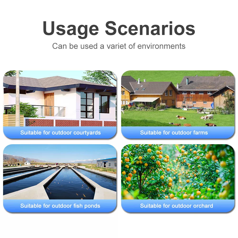 - Τροφοδοσία: Ηλιακό πάνελ + 3.7V 18650 μπαταρία ή 5V1.6A καλώδιο USB