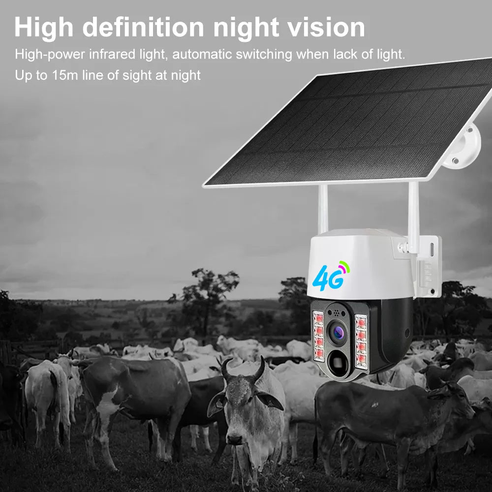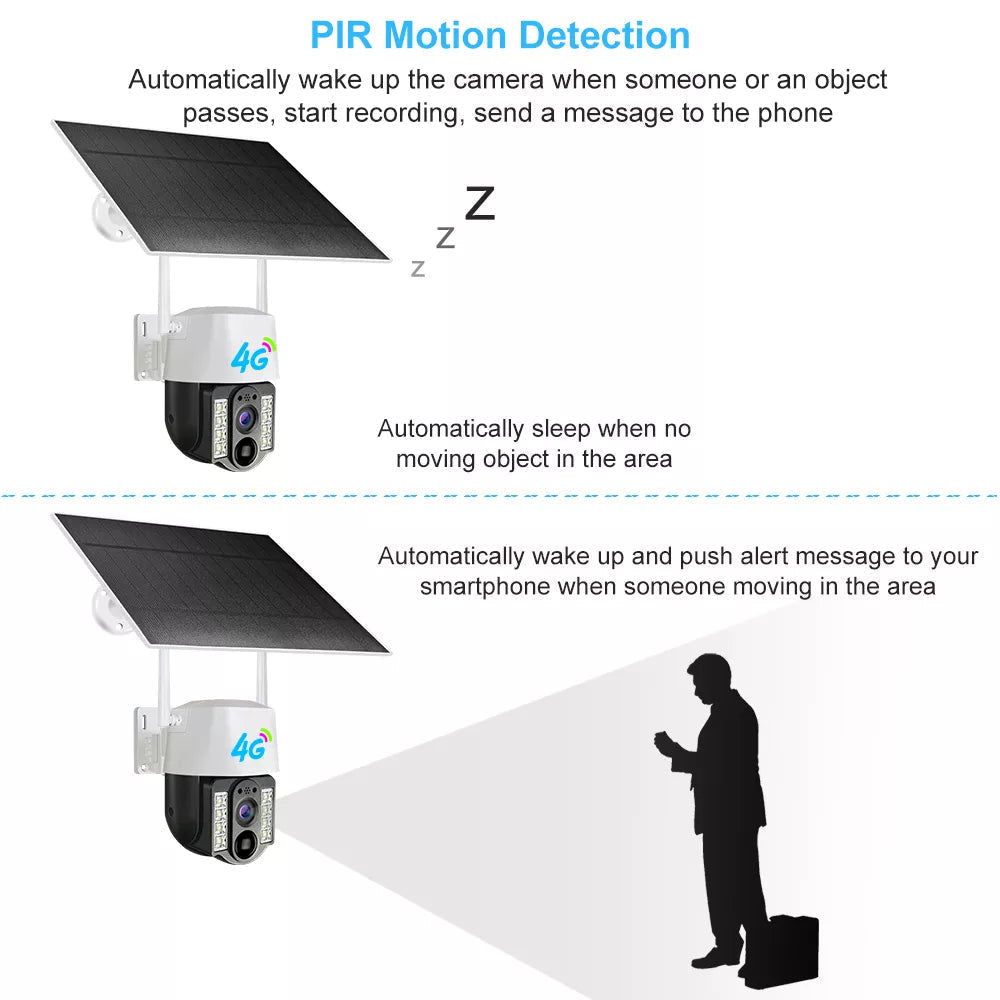 🟢 Ηλιακή κάμερα εξωτερικού χώρου. PIR Ptz ασύρματη κάμερα 4g κάρτας SIm για χώρους χωρίς ρεύμα και Wi-Fi)
