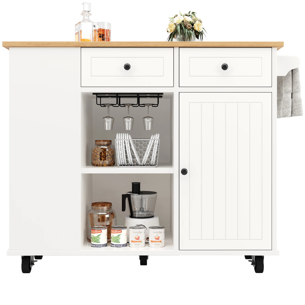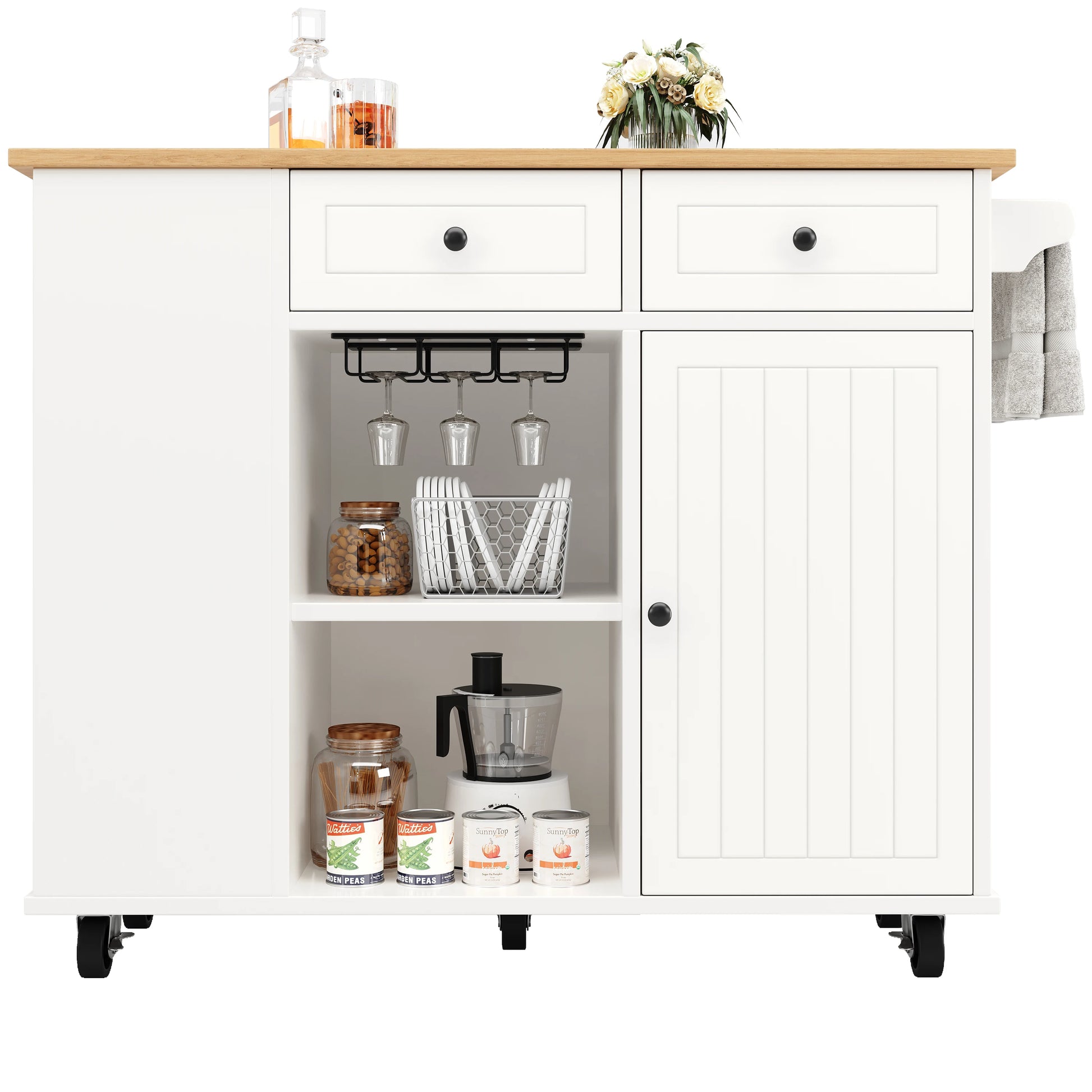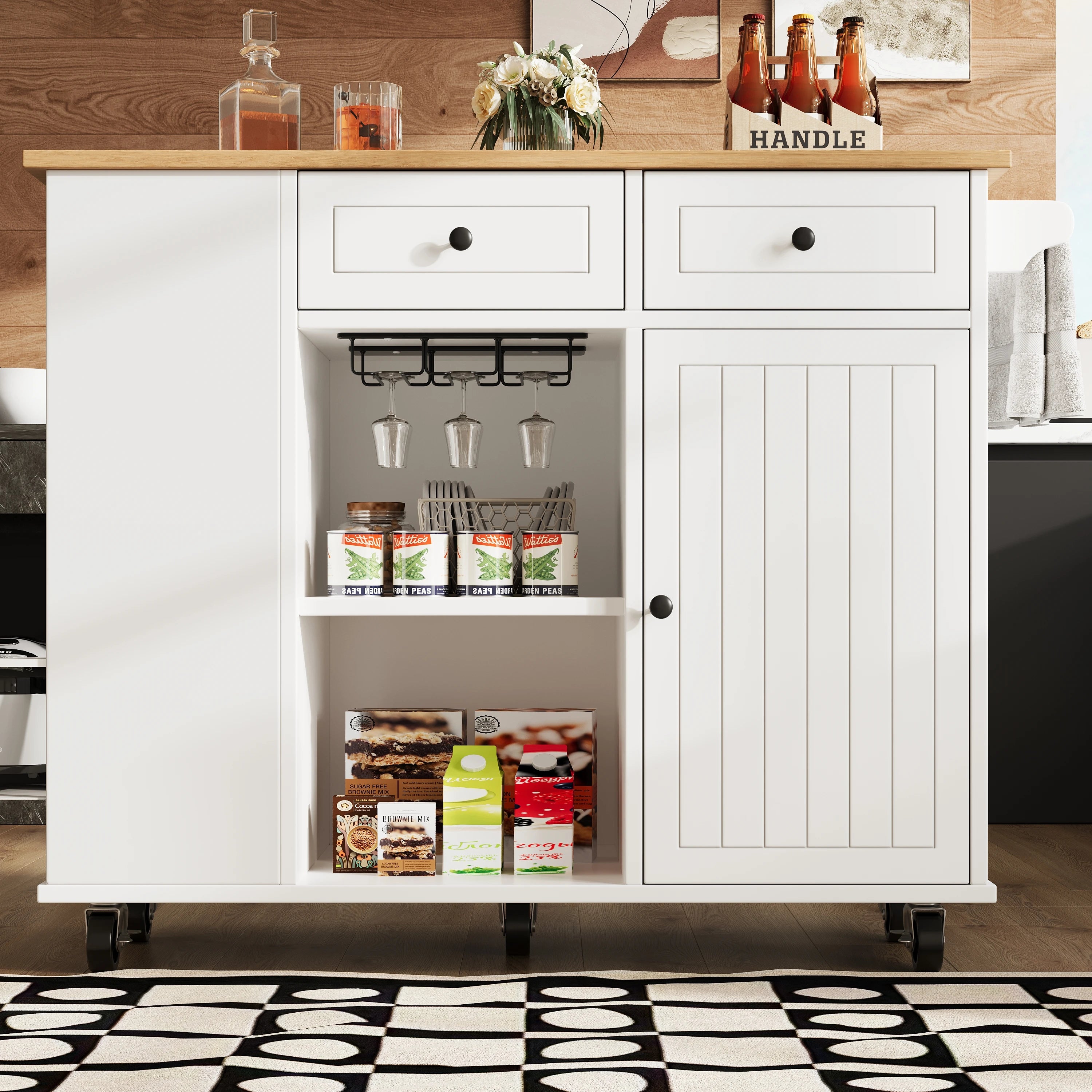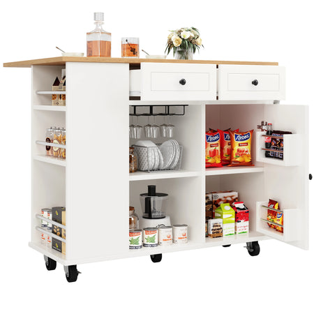 Παρουσιάζουμε τη Λευκή Νησίδα Κουζίνας με Πάγκο και Ντουλάπι Μπουφέ Αποθήκευσης — ένα ευέλικτο κεντρικό κομμάτι για πολυσύχναστες κουζίνες. Η επιφάνεια εργασίας με πυκνή υφή ξύλου προσφέρει έναν στιβαρό, ανθεκτικό χώρο για κοπή, προετοιμασία φαγητού και σερβίρισμα, ενώ το καθαρό λευκό φινίρισμα συμπληρώνει διάφορα στυλ κουζίνας. Οι πτυσσόμενες πλευρές επεκτείνονται για να δημιουργήσουν μια πρακτική επιφάνεια φαγητού, προσφέροντας επιπλέον χώρο προετοιμασίας ή έναν γρήγορο χώρο γευμάτων χωρίς να χρειάζεται ξεχωριστό τραπέζι. Η κινητικότητα είναι εύκολη χάρη στις ρόδες που περιστρέφονται 360 μοιρών, ώστε να μπορείτε να μετακινείτε τη νησίδα καθώς αλλάζει ο χώρος σας. Η προσεγμένη διάταξη περιλαμβάνει ράφι για ποτήρια κρασιού, ράφι για σνακ στην πόρτα του ντουλαπιού, πλευρικό ράφι και ρυθμιζόμενο εσωτερικό διαχωριστή σε τρία επίπεδα, επιτρέποντάς σας να προσαρμόσετε την αποθήκευση στα σκεύη, τα υλικά ή τα σνακ σας και να διατηρείτε τα πάντα τακτοποιημένα.