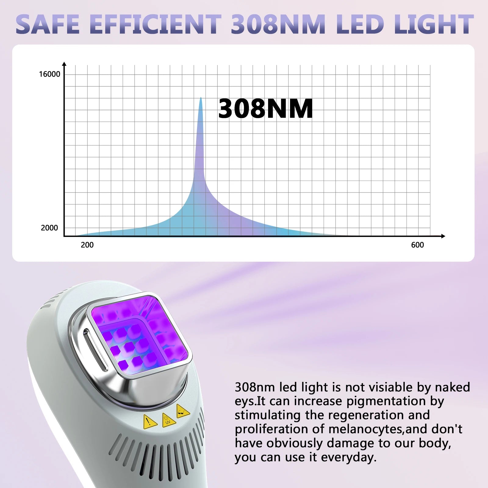 Η φωτεινή ενέργεια αυτού του προϊόντος είναι πολύ ισχυρή· παρακαλούμε ακολουθήστε τις οδηγίες δοσολογίας ή συμβουλευτείτε το δερματολόγο σας πριν από τη χρήση. Για χέρια και πόδια ενηλίκων: ξεκινήστε από 0,2 J/cm2, ακτινοβολήστε κάθε 1 ημέρα και αυξήστε κατά 0,1 J/cm2 ανά συνεδρία. Για χρήση στο πρόσωπο, λαιμό, άκρα και παιδιά: ξεκινήστε από 0,1 J/cm2 και αυξήστε κατά 0,05 J/cm2 ανά ημέρα. Μπορεί να εμφανιστεί ελαφρά ερυθρότητα 24 ώρες μετά την ακτινοβόληση· αυτό είναι τυπικό και δεν υποδηλώνει ανεπιθύμητη αντίδραση. Διατηρήστε τη συνιστώμενη δόση εκτός αν σας υποδείξει διαφορετικά ο κλινικός σας ιατρός. Αυτή η συσκευή εκπέμπει υπεριώδες φως και πρέπει να χρησιμοποιείται με προσοχή.