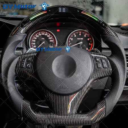 Αναβαθμίστε το εσωτερικό της BMW E90, E92 ή E93 3 Series με το τιμόνι LED από ανθρακονήματα σε διάτρητο δέρμα. Αυτό το 100% ολοκαίνουργιο τιμόνι συνδυάζει ένα ελαφρύ κέλυφος από ανθρακονήματα με premium διάτρητο δέρμα για μια εμφάνιση έτοιμη για αγώνες και μια premium αίσθηση. Ο επίπεδος σχεδιασμός τύπου D ενισχύει την εργονομία και την είσοδο/έξοδο, ενώ η ραφή BMW Tricolor προσθέτει μια πινελιά αυθεντικού, εμπνευσμένου από την απόδοση στυλ. Το τιμόνι έχει σχεδιαστεί για τα μοντέλα που αναφέρονται στον οδηγό συμβατότητας μας και προσφέρεται χωρίς κουμπιά, επένδυση κουμπιών ή αερόσακους για να διατηρεί την εγκατάσταση καθαρή και απλή. Διαθέτει ενσωματωμένη ένδειξη αλλαγής ταχύτητας LED και οθόνη LCD για να παρέχει κρίσιμα δεδομένα οδήγησης με μια ματιά. Οι πεντάλ δεν περιλαμβάνονται, και η δόνηση μπορεί να διατηρηθεί ή να ρυθμιστεί κατόπιν αιτήματος. Εάν δεν είστε σίγουροι για την εφαρμογή, παρακαλώ μοιραστείτε μια φωτογραφία του αρχικού σας τιμονιού ή ανατρέξτε στη λίστα μοντέλων μας. Η προσαρμογή διαρκεί περίπου 15 ημέρες, αν και αποστέλλουμε άμεσα αν υπάρχει διαθέσιμο απόθεμα.