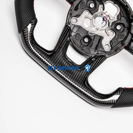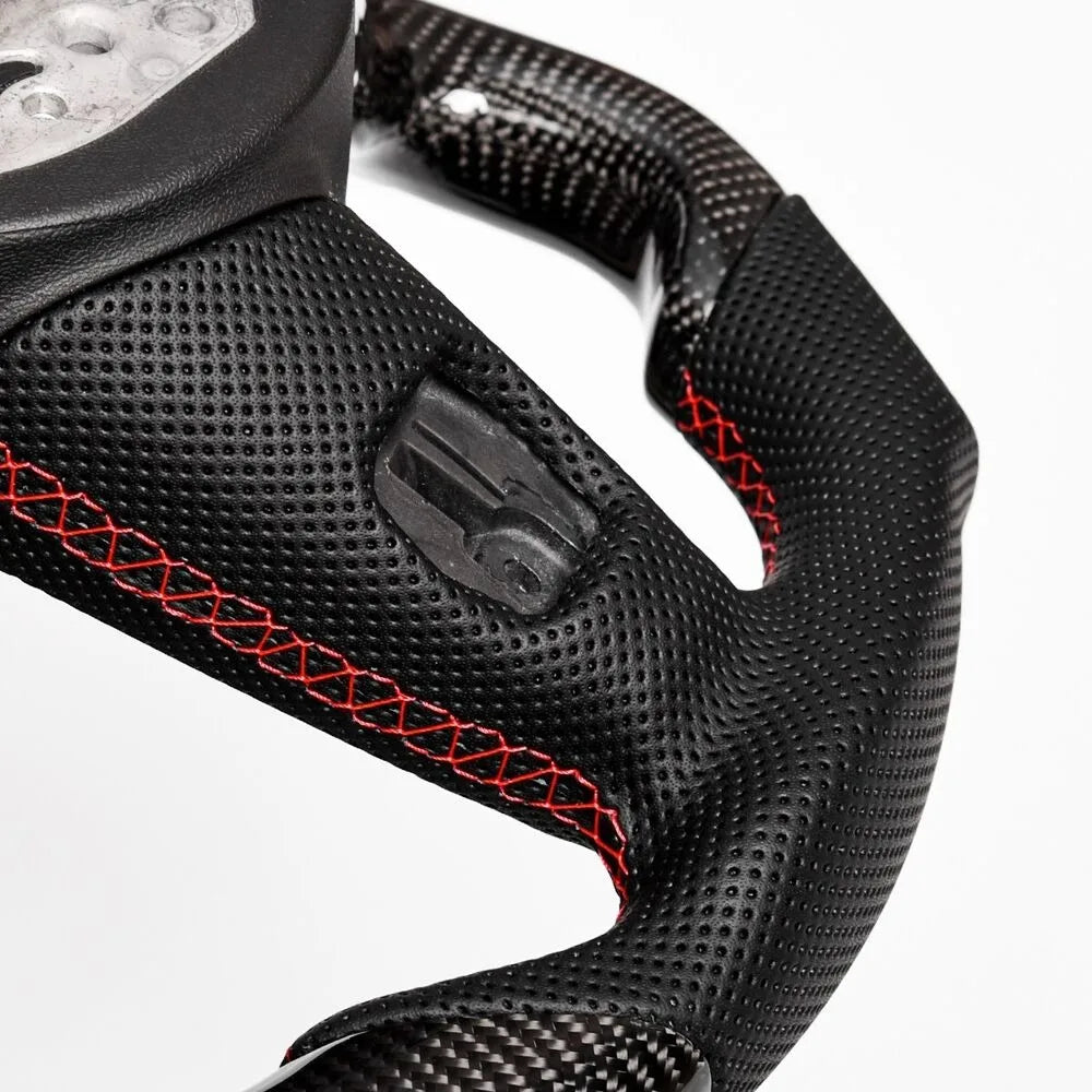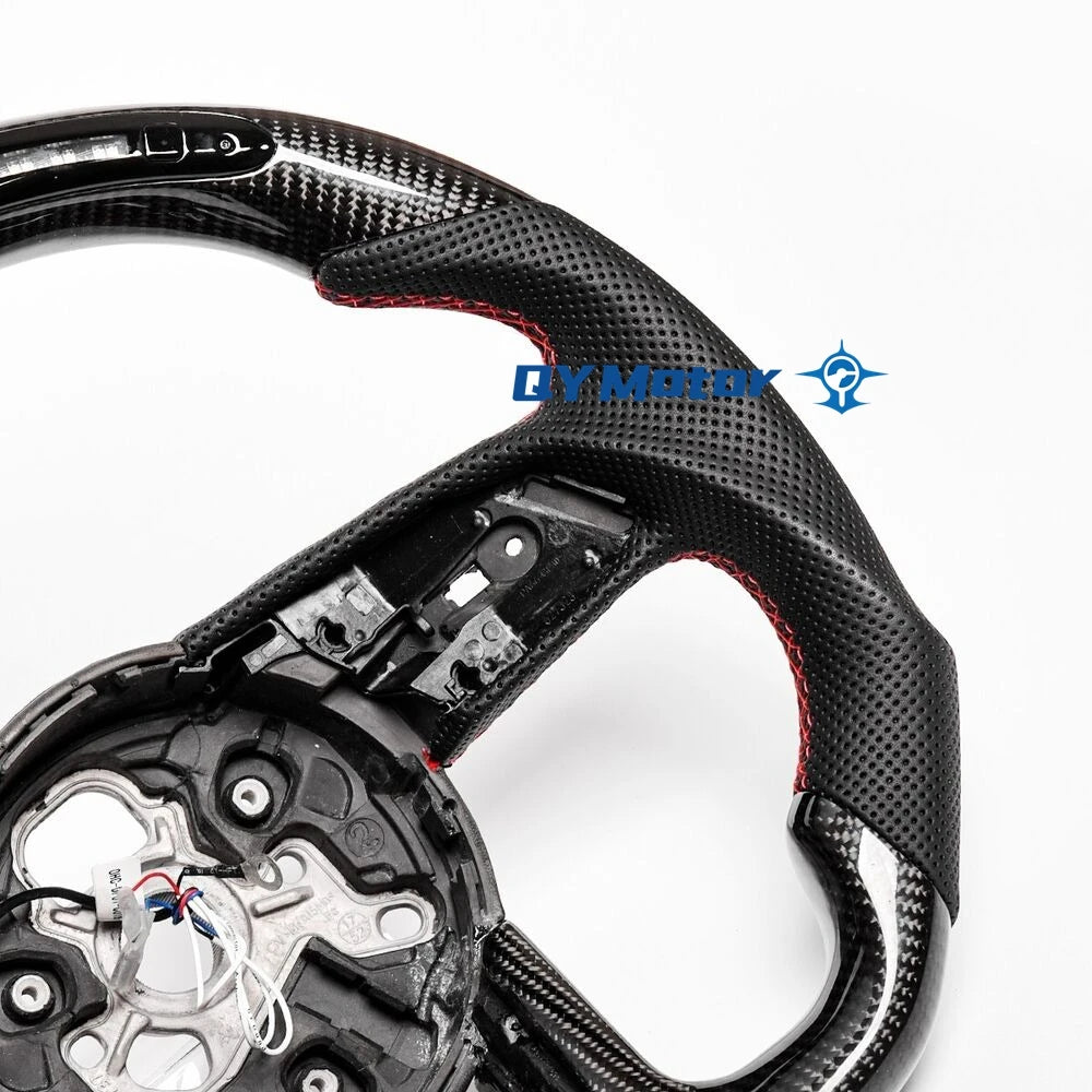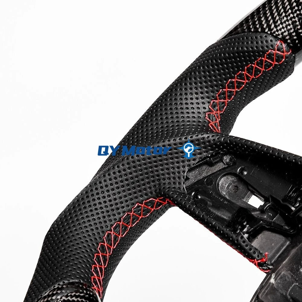 Αναβαθμίστε την καμπίνα σας με το τιμόνι Audi RS3 RS4 RS5 RS7, κατασκευασμένο από τολμηρό ανθρακονήμα και διάτρητο μαύρο δέρμα. Αυτό το τιμόνι εμπνευσμένο από τον αθλητισμό συνδυάζει υλικά υψηλής αντοχής με άνετη λαβή, προσφέροντας βελτιωμένο έλεγχο και εντυπωσιακή εμφάνιση εσωτερικού. Ο στρογγυλός σχεδιασμός με επίπεδο κάτω μέρος παρέχει εργονομική θέση χεριού για γρήγορη και ακριβή διεύθυνση, ενώ η κόκκινη ραφή προσθέτει μια ζωντανή λεπτομέρεια που συμπληρώνει πολλά εσωτερικά της Audi. Οι ενδείξεις LED και η ενσύρματη σύνδεση προσθέτουν μια σύγχρονη πινελιά στην εμπειρία οδήγησής σας. Σημειώστε ότι οι πεντάλ δεν περιλαμβάνονται και το τιμόνι έχει σχεδιαστεί για να ταιριάζει σε επιλεγμένα μοντέλα Audi με επιβεβαιωμένη συμβατότητα στις λεπτομέρειες εφαρμογής.