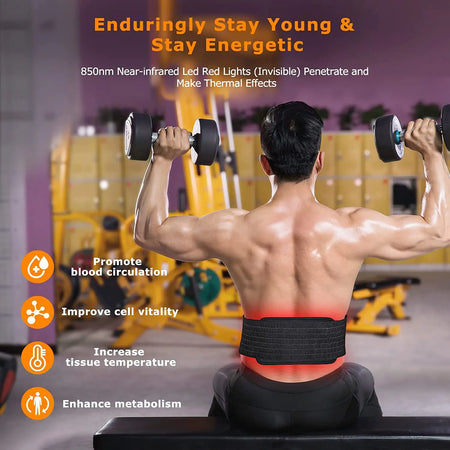 Ζώνη Θεραπείας με Κόκκινο Φως LED για Ανακούφιση από Πόνο, 660nm και 850nm, Μέση, Πλάτη