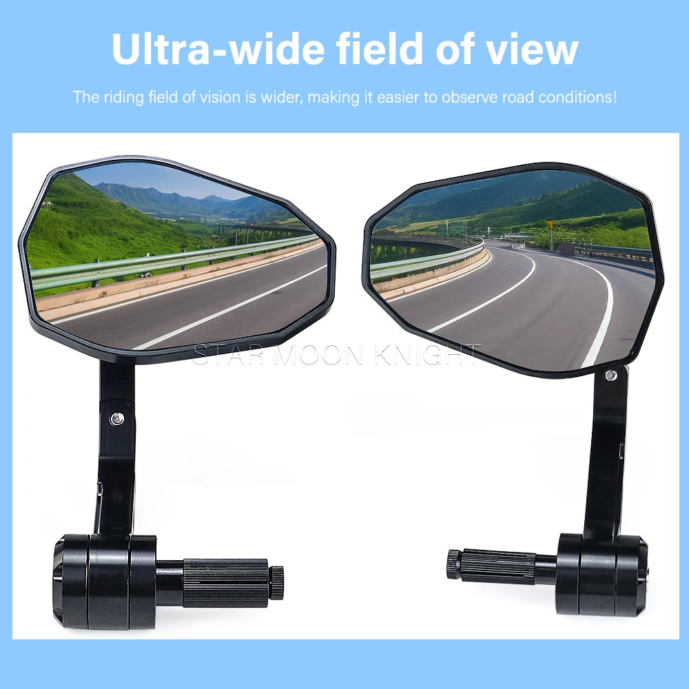 Οι καθρέφτες διαθέτουν ρύθμιση 180° αριστερά-δεξιά και περιστροφή 360°, καθώς και διπλό αεροδυναμικό σχέδιο φτερού που προσθέτει κάθετη δύναμη και δυναμική, εμπνευσμένη από αγώνες εμφάνιση. Το γυαλί υψηλής ευκρίνειας με κυρτή επιφάνεια παρέχει ευρεία ανακλαστική περιοχή 7544 mm², εξασφαλίζοντας καθαρή ορατότητα της κυκλοφορίας πίσω σας ώστε να μπορείτε να κάνετε πιο ασφαλείς αλλαγές λωρίδας και προσπεράσεις.
