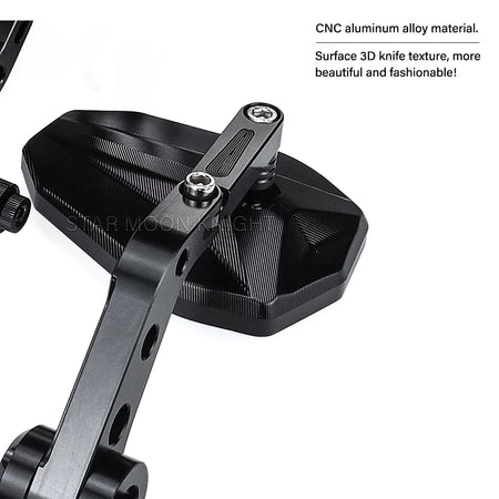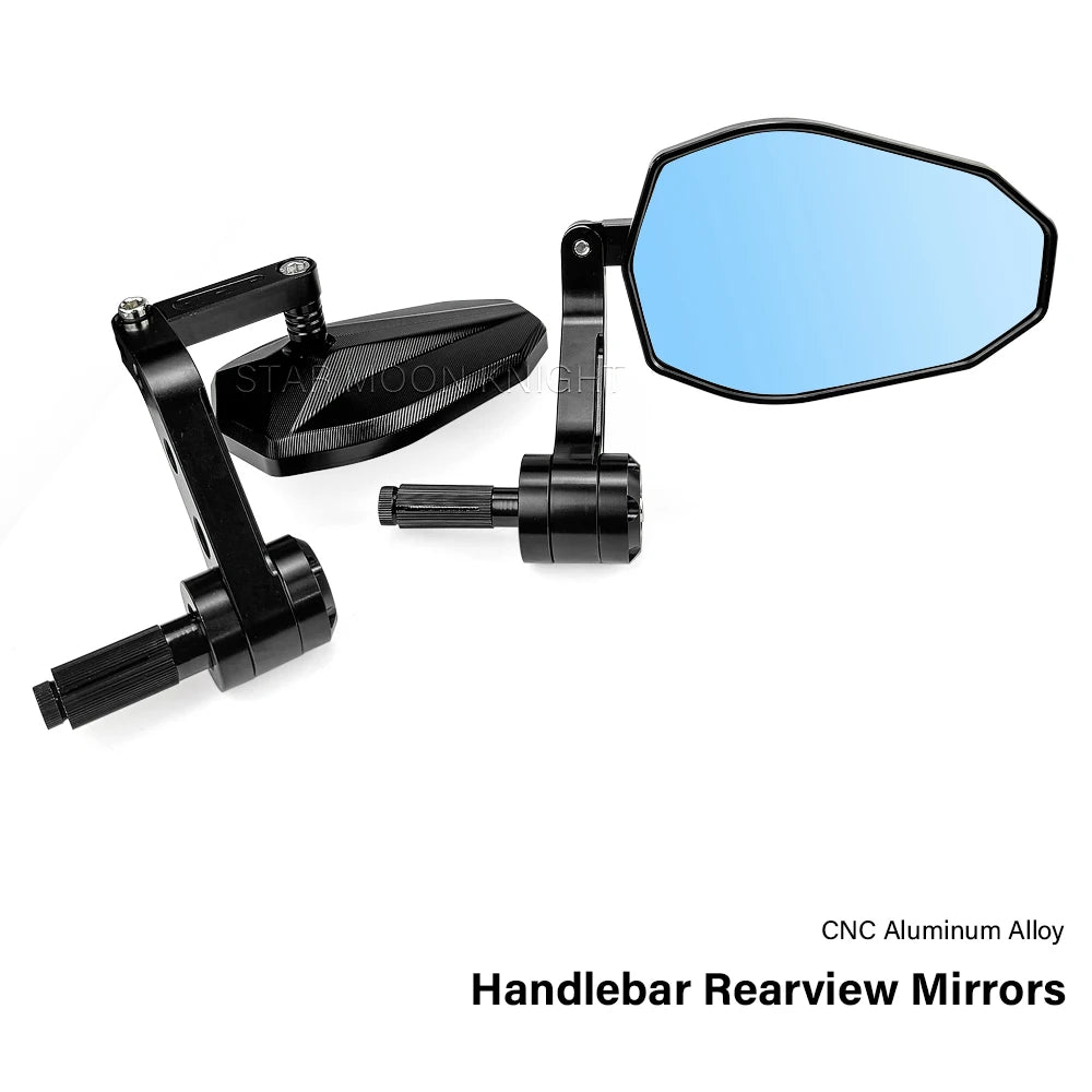 - Ένα ζευγάρι (Αριστερός & Δεξιός) ρυθμιζόμενοι πίσω καθρέφτες από CNC αλουμίνιο με μπλε φακό