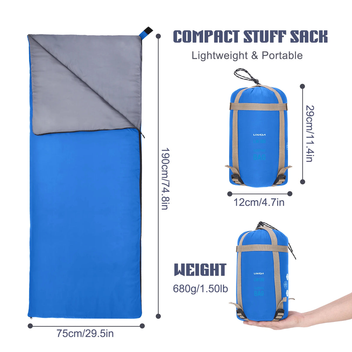 Ζήστε την ευέλικτη ζεστασιά και φορητότητα με τον υπνόσακο LIXADA Envelope. Με μέγεθος 190x75 cm και βάρος μόνο 680 g, αυτός ο υπνόσακος υπερ-ελαφρύς είναι ιδανικός για ταξίδια, κατασκήνωση και πεζοπορία. Κατασκευασμένος από νάιλον εξωτερικό και 100% πολυεστερική γέμιση, προσφέρει μια μαλακή, αναπνεύσιμη αίσθηση και αξιόπιστη ζεστασιά για ταξίδια την άνοιξη και το φθινόπωρο, καθώς και για καλοκαιρινές περιπέτειες. Το σχήμα του φακέλου κρατά τη ζεστασιά ενώ το διπλής όψης φερμουάρ επιτρέπει εύκολη είσοδο και έξοδο. Όταν είναι πλήρως ανοιχτός, μπορεί να χρησιμοποιηθεί ως κουβέρτα, προσφέροντάς σας επιπλέον ευελιξία σε ξενώνες, καλύβες ή σκηνές. Μπορείτε ακόμη να συνδέσετε δύο τσάντες για να σχηματίσετε έναν ευρύχωρο διπλό υπνόσακο για κοινή άνεση. Συσκευάστε τον στην συμπεριλαμβανόμενη τσάντα συμπίεσης για να ελαχιστοποιήσετε τον χώρο στην πλάτη σας.