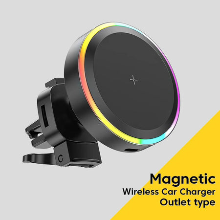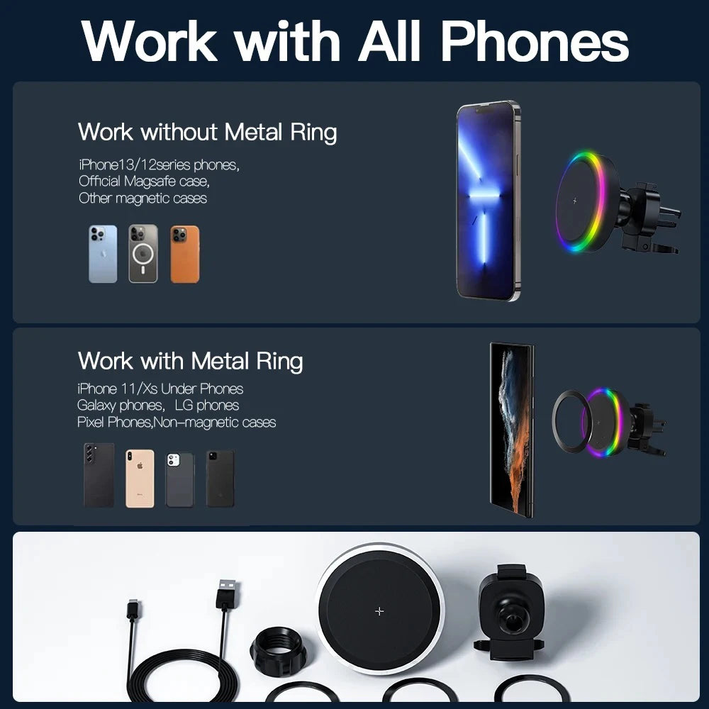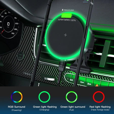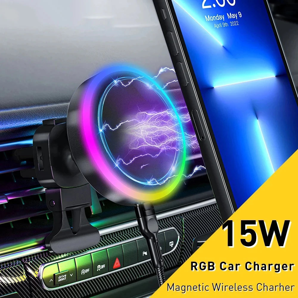 Μαγνητική Ασύρματη Βάση Κινητού Αυτοκινήτου RGB με Γρήγορη Φόρτιση 15W και Αυτόματο Σφιγκτήρα