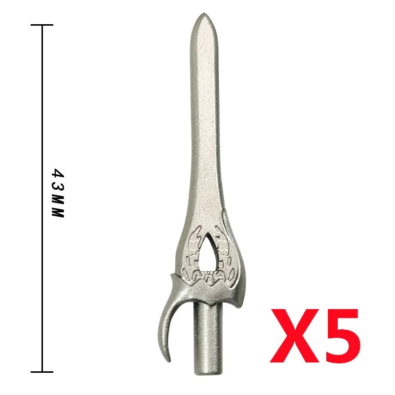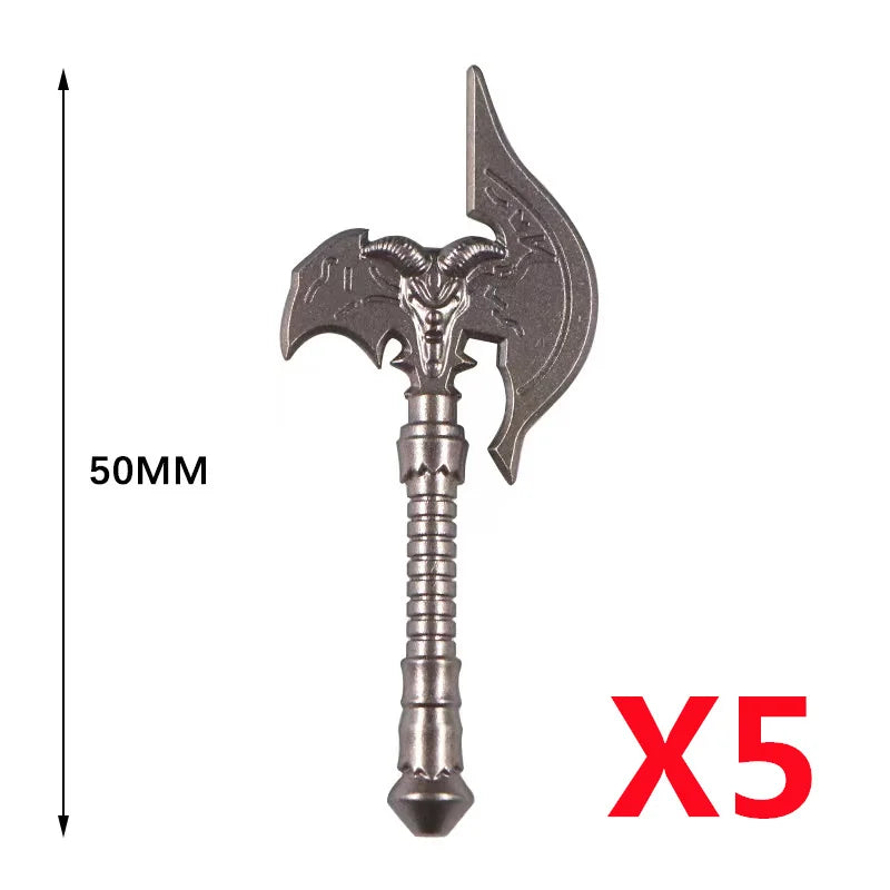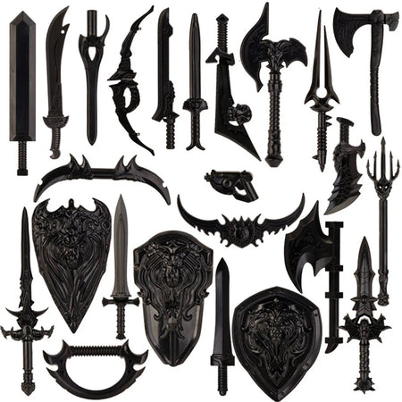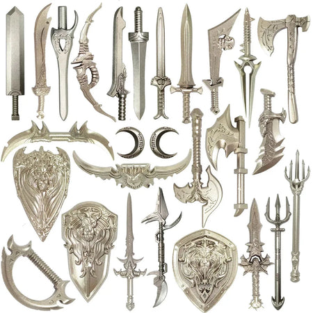 Απελευθερώστε τη φαντασία του παιδιού σας με τα Μεσαιωνικά Αξεσουάρ Όπλων MOC. Αυτό το σετ περιλαμβάνει μια ποικιλία όπλων όπως τόξο, βέλος, σπαθί, ασπίδα, τσεκούρι, σφυρί, δόρυ, όπλο και τρίαινα, όλα συμβατά με μεγάλες μάρκες δομικών μπλοκ.