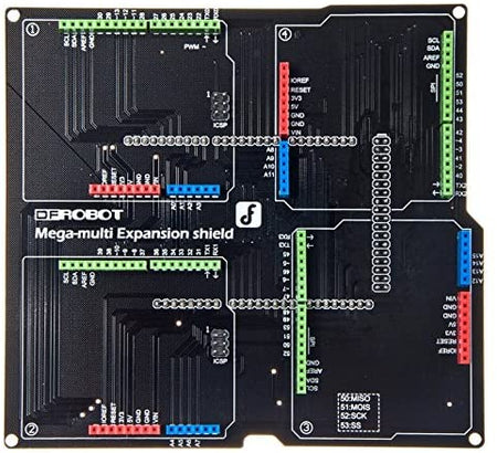 Απελευθερώστε το πλήρες δυναμικό του Arduino Mega σας με την Mega Multi Arduino Mega Expansion Shield. Αυτή η καινοτόμος ασπίδα σας επιτρέπει να συνδέετε χωρίς κόπο έως και 4 ασπίδες ταυτόχρονα, εξαλείφοντας οποιεσδήποτε συγκρούσεις ακίδων I/O μπορεί να συναντήσετε κατά τη διάρκεια των έργων σας. Με όλες τις ακίδες I/O της Mega πλακέτας επεκταμένες, μπορείτε τώρα να εξερευνήσετε νέες δυνατότητες και να ανεβάσετε τις δημιουργίες σας σε νέο επίπεδο.