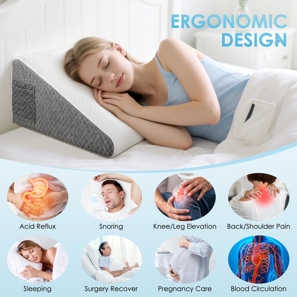 - Ιδανικό για ανάρρωση μετά από χειρουργική επέμβαση ή απλά για χαλάρωση στο κρεβάτι ενώ διαβάζετε ή παρακολουθείτε τηλεόραση—ρυθμίστε τη γωνία για εξατομικευμένη υποστήριξη.