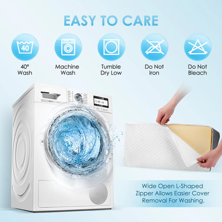 - Το κάλυμμα είναι αφαιρούμενο και πλενόμενο στο πλυντήριο· πλύνετε σε κρύο νερό και στεγνώστε σε χαμηλή θερμοκρασία. Μην χρησιμοποιείτε λευκαντικό.