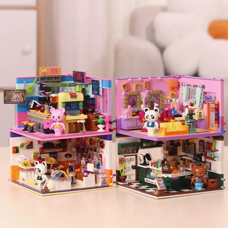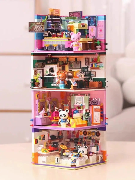 Σετ Μικρών Τουβλών Οικοδομής Μικρή Πόλη με Κομμωτήριο, Καφετέρια, Μπαρ ABS