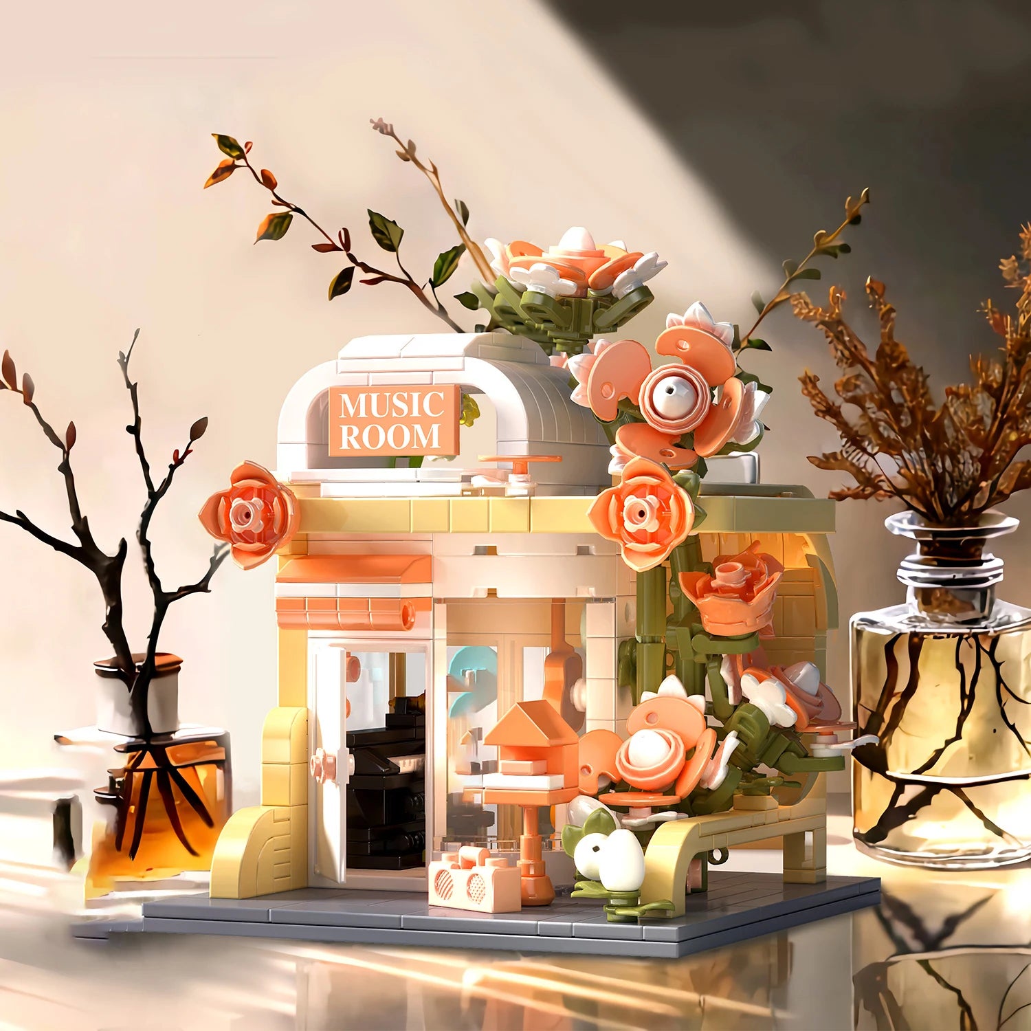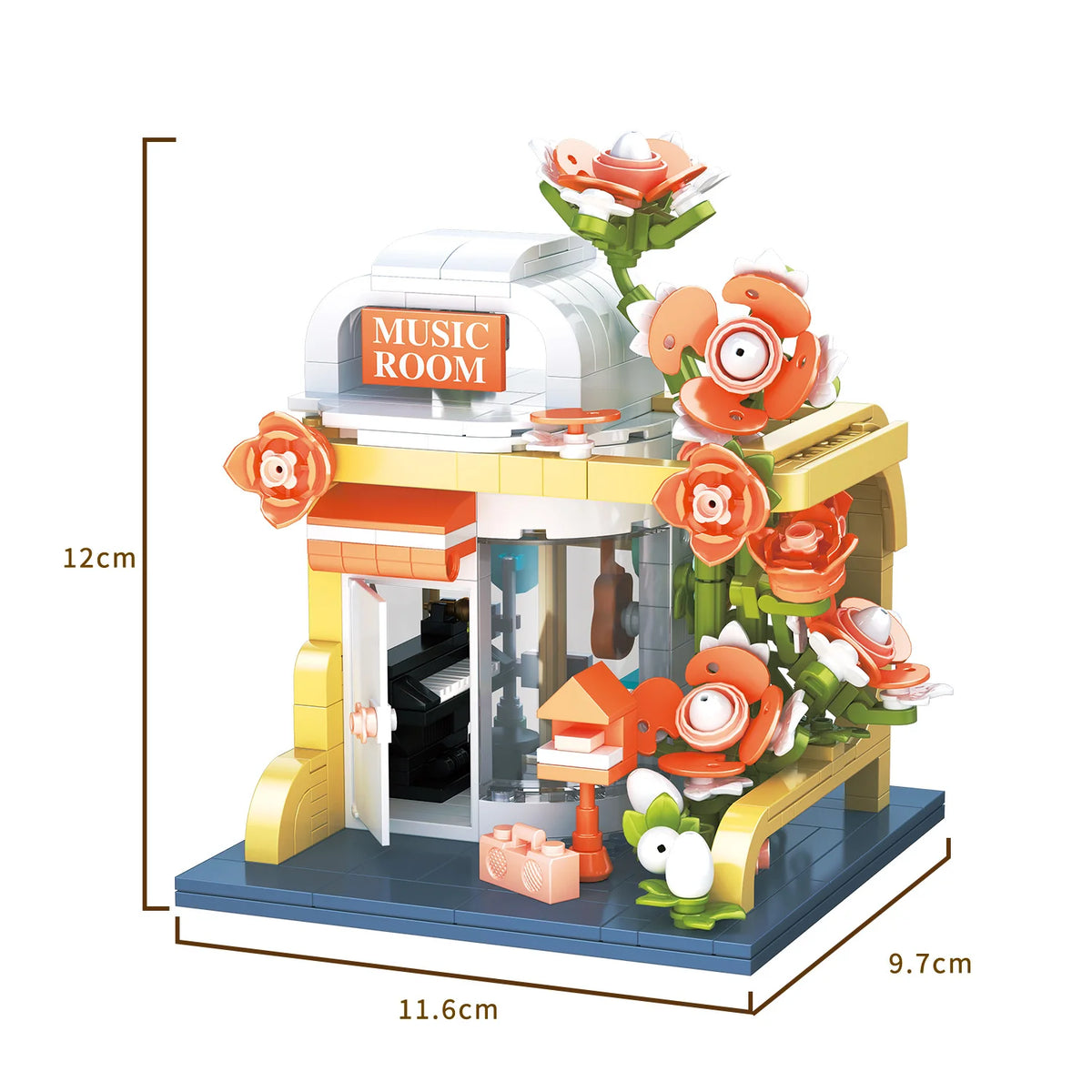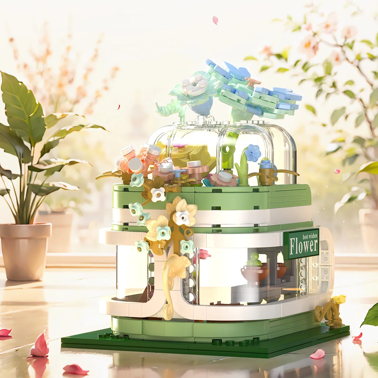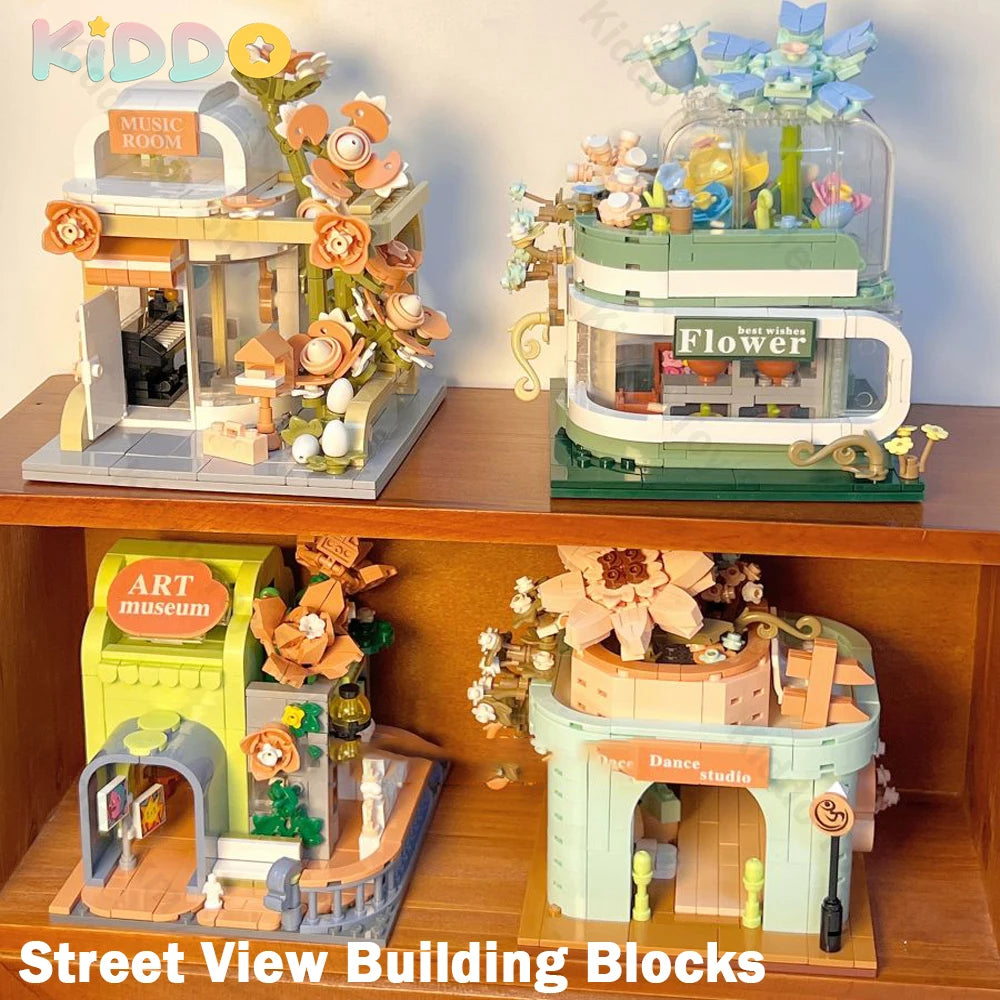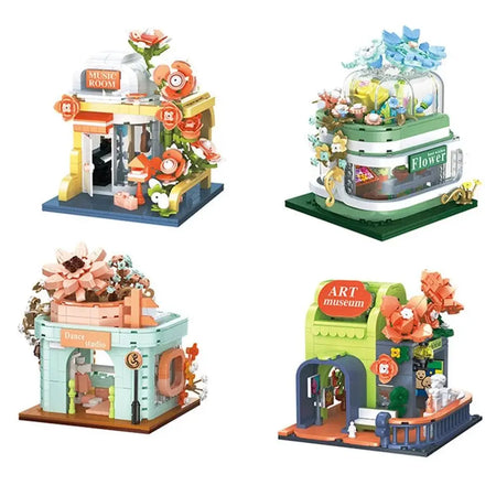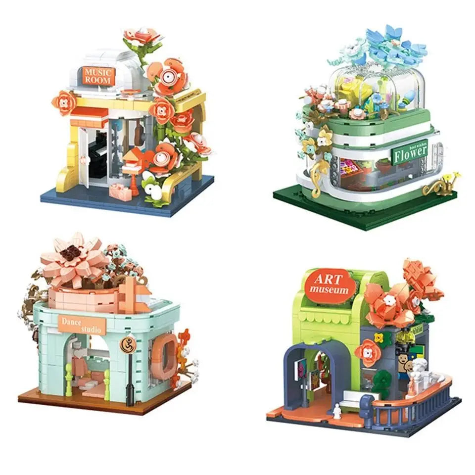 Σετ Μικρών Τουβλών Κατασκευής Ανθοπωλείου, Παιχνίδια Μοντέλου DIY Οδικής Όψης, Πλαστικό ABS