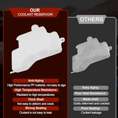 - Παρέχει ειδικό χώρο επέκτασης για να συλλάβει το υπερβολικό ψυκτικό κατά τη διάρκεια λειτουργίας υψηλής θερμότητας, μειώνοντας τις διαρροές και την ακαταστασία στον χώρο του κινητήρα.
