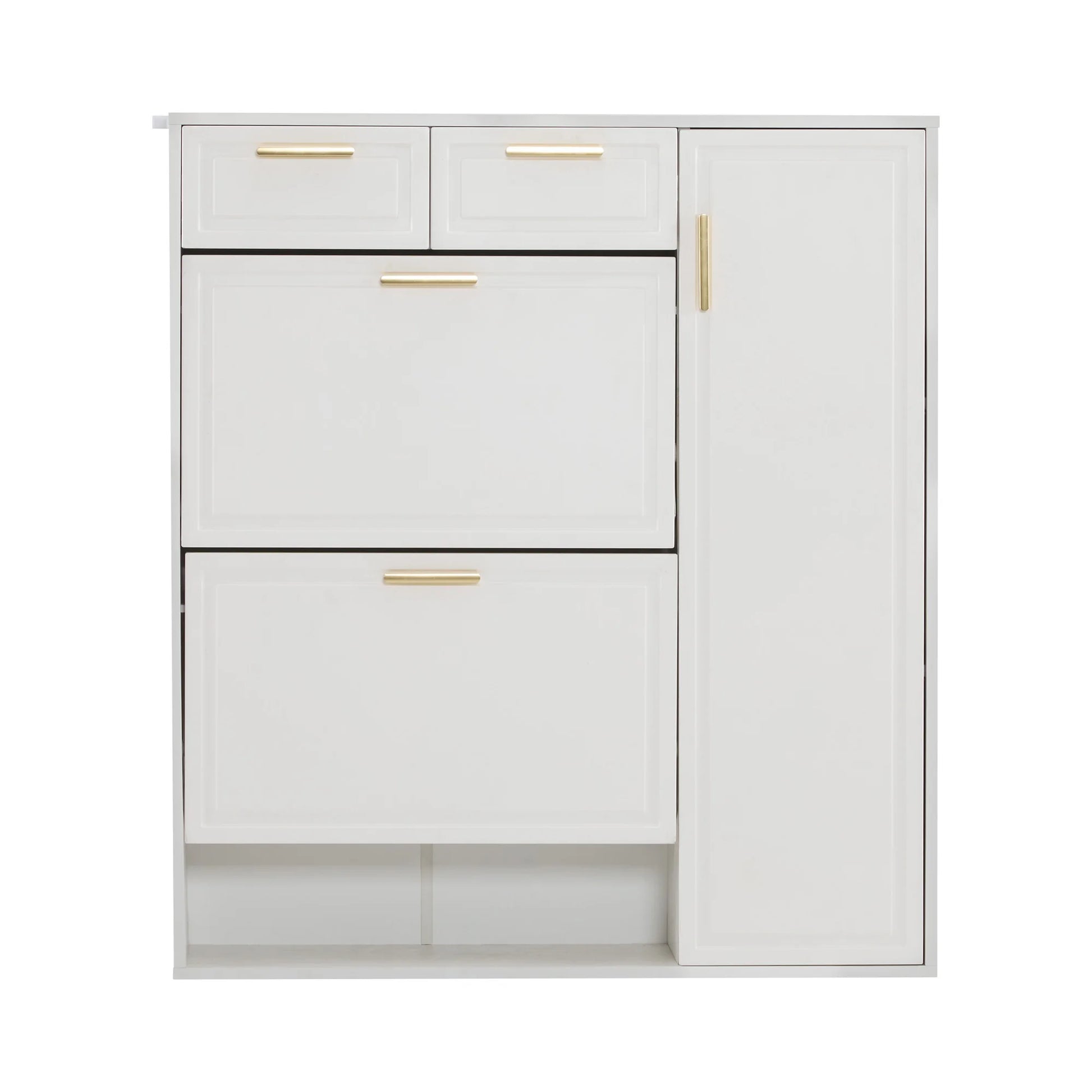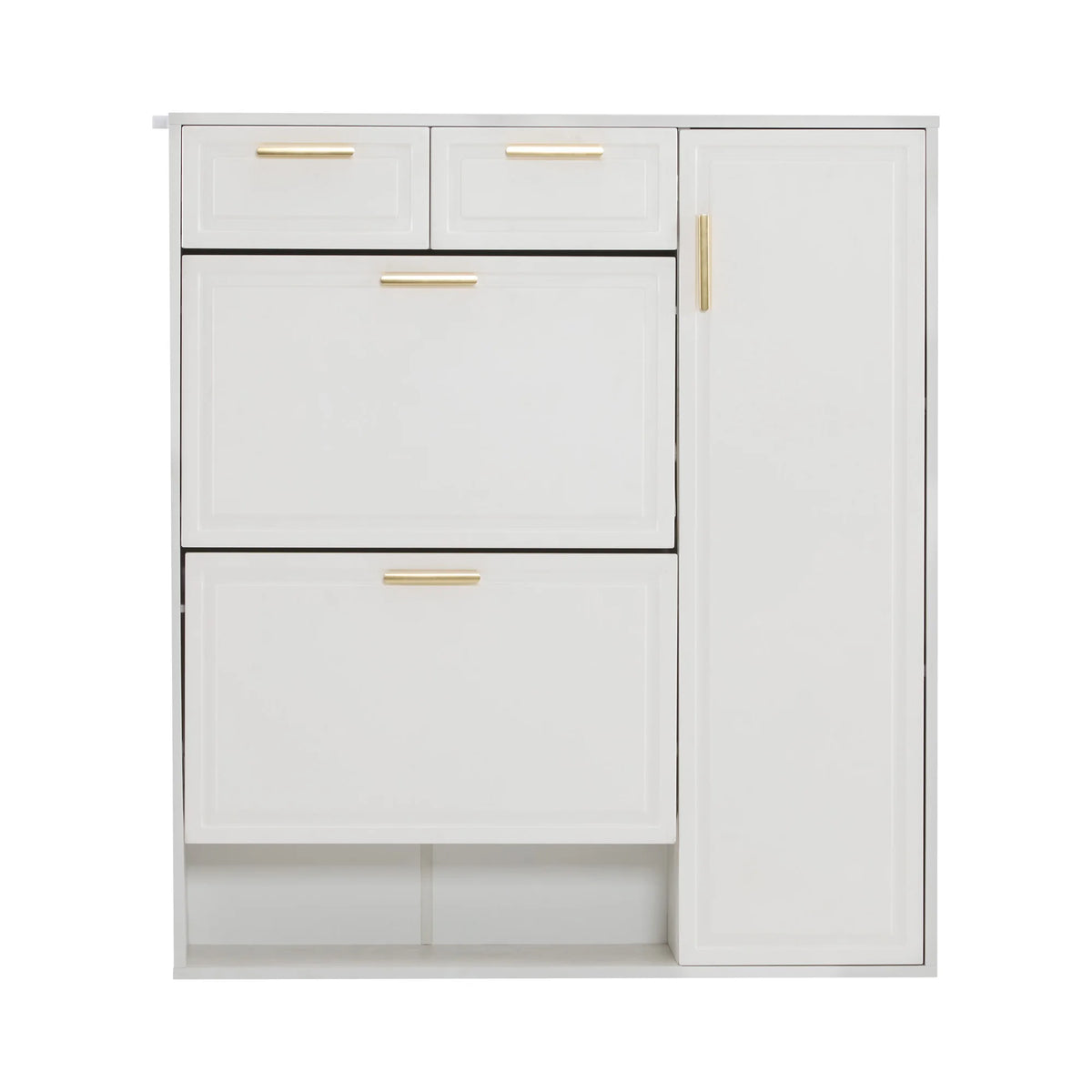 Γνωρίστε το Λευκό Ντουλάπι Παπουτσιών με Ρυθμιζόμενα Ράφια και Χρυσές Λαβές — μια ευέλικτη λύση αποθήκευσης που συνδυάζει καθαρό, μοντέρνο σχεδιασμό με πρακτική οργάνωση. Κατασκευασμένο για να αντέχει την καθημερινή χρήση παπουτσιών και όχι μόνο, αυτό το ντουλάπι διατηρεί την είσοδό σας τακτοποιημένη ενώ προστατεύει τα παπούτσια από σκόνη και γρατζουνιές. Το λευκό φινίρισμα και τα κομψά χρυσά εξαρτήματα προσθέτουν μια πινελιά κομψότητας σε κάθε χώρο, καθιστώντας το ένα στυλάτο σημείο εστίασης σε διαδρόμους, χώρους εισόδου ή υπνοδωμάτια.