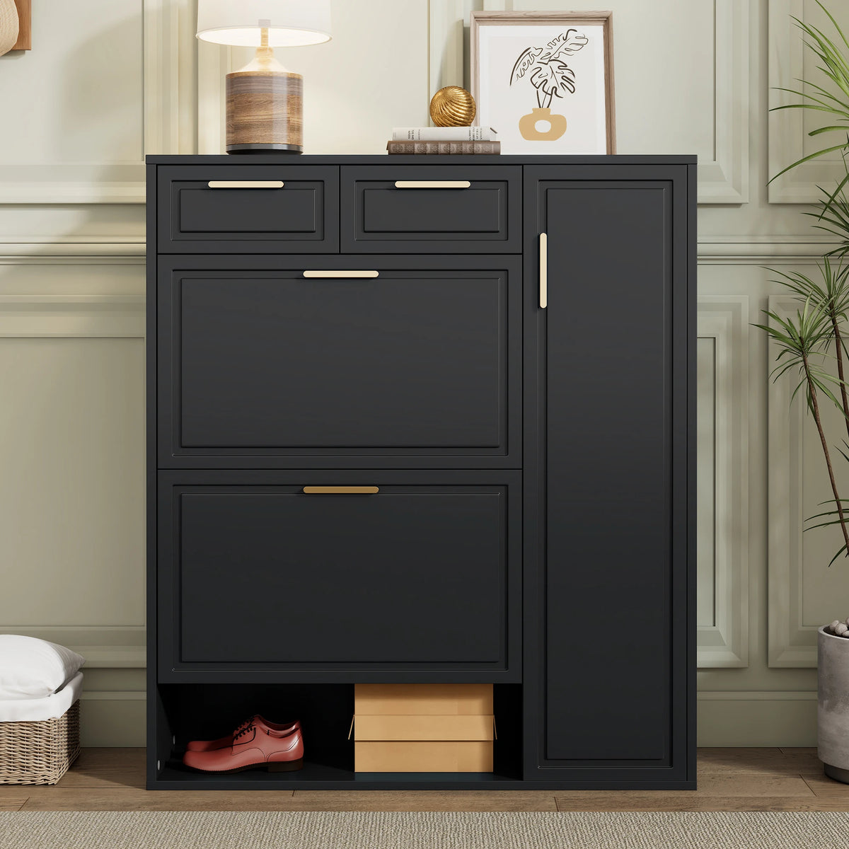 Δύο μικρά συρτάρια προσφέρουν ασφαλείς θέσεις για κλειδιά, κάρτες και άλλα μικρά αντικείμενα, ώστε να μπορείτε να πάρετε τα απαραίτητα καθώς φεύγετε χωρίς να ψάχνετε μέσα στο χάος. Τα ανθεκτικά μεταλλικά εξαρτήματα εξασφαλίζουν ότι τα συρτάρια γλιστρούν ομαλά με την πάροδο του χρόνου, διατηρώντας την αξιοπιστία ακόμα και με συχνή χρήση. Με πολυλειτουργική αποθήκευση, το ντουλάπι περιλαμβάνει ευρύχωρα ράφια και ανοιχτούς χώρους που μπορούν να φιλοξενήσουν περίπου 10–15 ζευγάρια παπουτσιών σε διάφορα μεγέθη και στυλ, ενώ τα ρυθμιζόμενα ράφια σας δίνουν ευελιξία να προσαρμόσετε τον χώρο καθώς η συλλογή σας μεγαλώνει.