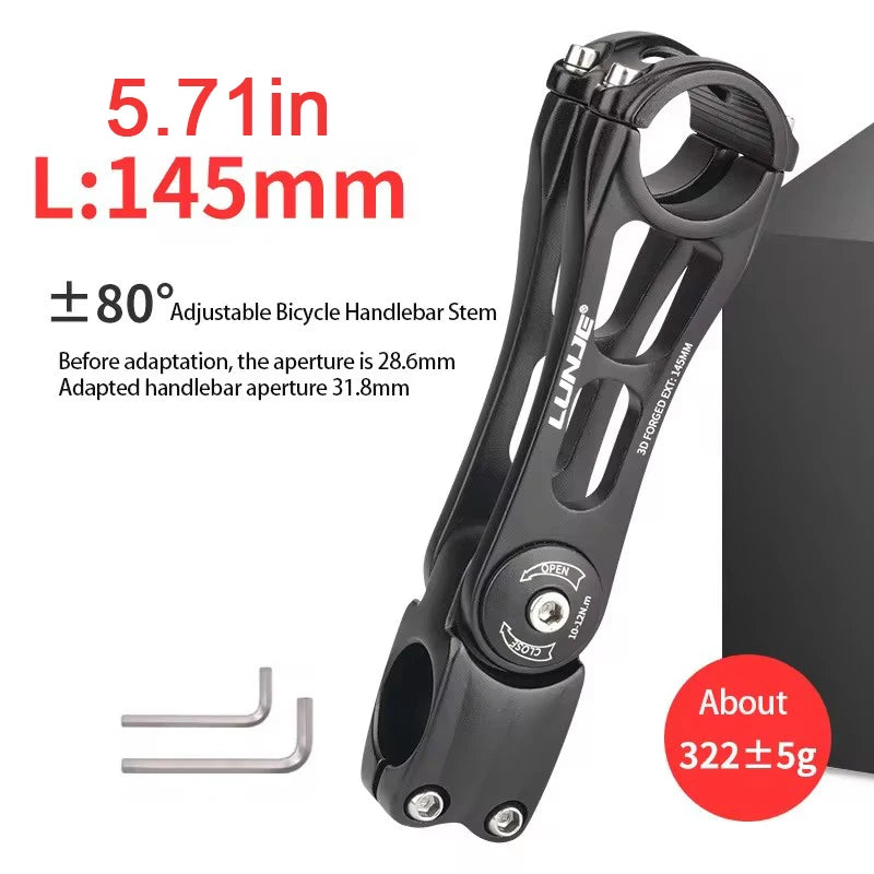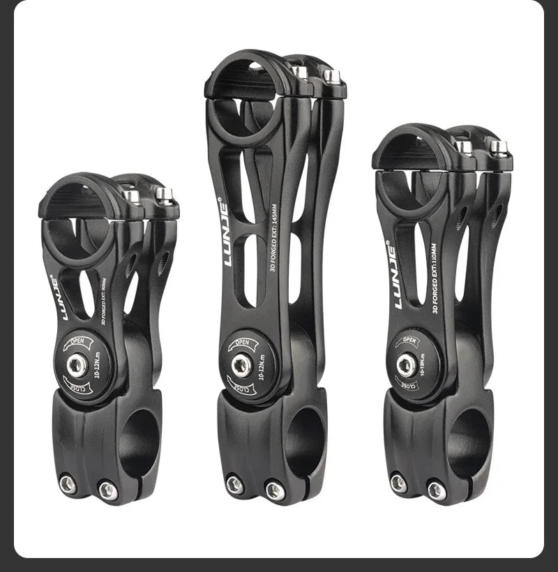 Αναβαθμίστε το setup του mountain bike σας με το Αλουμινένιο MTB Στέλεχος Τιμονιού 31.8mm, ρυθμιζόμενο 90/110/130mm. Αυτό το ελαφρύ κράμα αλουμινίου προσφέρει στιβαρότητα, αξιόπιστο χειρισμό και εύκολη ρύθμιση για να ταιριάζει στο έδαφος και το στυλ οδήγησής σας.