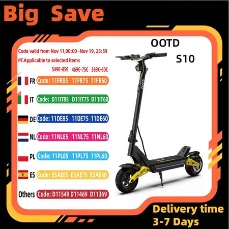 OOTD S10 Αναδιπλούμενη Ηλεκτρική Σκούτερ, 1400W Εκτός Δρόμου, 48V 20Ah Μπαταρία