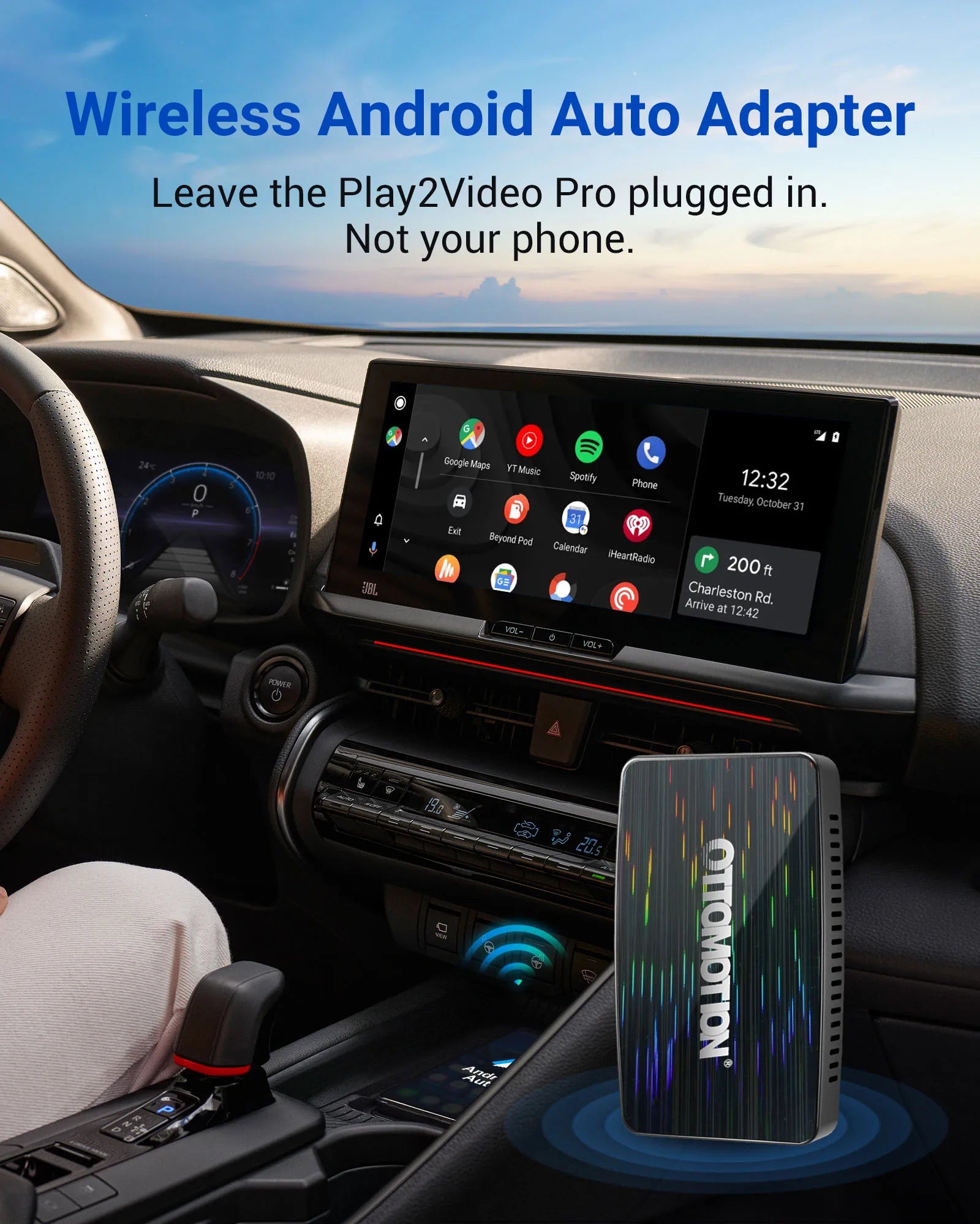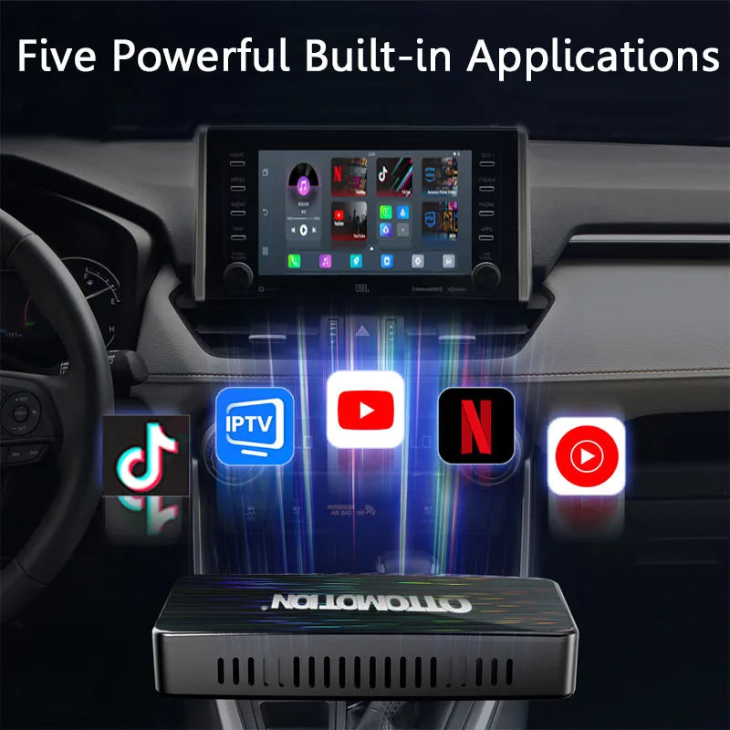 Το OTTOMOTION Play2Video Pro είναι ο απόλυτος ασύρματος προσαρμογέας ψυχαγωγίας αυτοκινήτου που φέρνει απρόσκοπτο CarPlay και Android Auto στο Benz, Kia, Honda ή Toyota σας. Σχεδιασμένο για μοντέλα 2016–2024 με εργοστασιακό ενσύρματο CarPlay, μετατρέπει την οδήγησή σας σε μια συνδεδεμένη, πλούσια σε μέσα εμπειρία. Απολαύστε εγγενή πρόσβαση σε YouTube, Netflix και IPTV Smarters PRO χωρίς να χρειάζεται να συνδέετε ποτέ το τηλέφωνό σας. Το διπλής ζώνης Wi‑Fi και το Bluetooth 4.2 προσφέρουν αξιόπιστη, γρήγορη σύνδεση για streaming, κλήσεις hands-free και ομαλή πλοήγηση, ενώ η απλή εγκατάσταση plug-and-play σημαίνει ότι θα είστε έτοιμοι σε λίγα λεπτά.