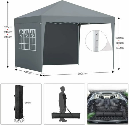 3x3μ Υπαίθριο Περίπτερο Με 4 Πλευρικές Πάνελ Σκίασης