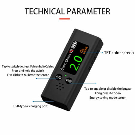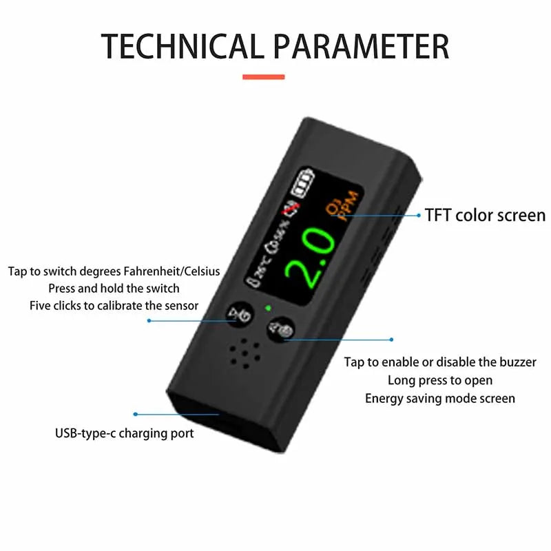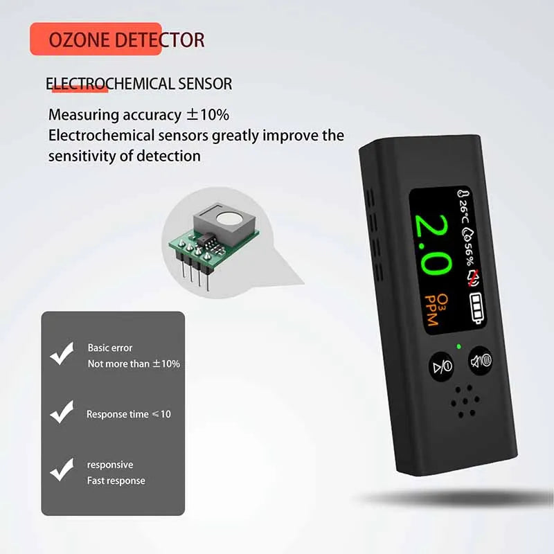 Γνωρίστε τον ανιχνευτή αερίου όζοντος 3-σε-1 με θερμοκρασία και υγρασία και φόρτιση USB-C. Αυτή η συμπαγής συσκευή συνδυάζει έναν ηλεκτροχημικό ανιχνευτή όζοντος με μετρήσεις σε πραγματικό χρόνο για την περιβαλλοντική θερμοκρασία και υγρασία, όλα εμφανίζονται καθαρά σε μια φωτεινή έγχρωμη οθόνη TFT. Σας βοηθά να προστατεύσετε την ποιότητα του εσωτερικού αέρα σε σπίτια, εργαστήρια, εργαστήρια ή οποιονδήποτε χώρο όπου η παρακολούθηση του όζοντος έχει σημασία. Όταν τα επίπεδα του όζοντος αυξάνονται πάνω από 5,0 ppm, μια δυνατή ηχητική ειδοποίηση σας προειδοποιεί αμέσως για περιβαλλοντικές αλλαγές, ώστε να μπορείτε να αντιδράσετε γρήγορα. Με τη φόρτιση USB-C, μια γρήγορη φόρτιση 1 ώρας σας κρατά ενεργοποιημένους για μεγαλύτερες συνεδρίες παρακολούθησης. Παρακαλώ σημειώστε ότι οι μετρήσεις του αισθητήρα μπορεί να επηρεαστούν από άλλα αέρια λόγω της διασταυρούμενης ευαισθησίας που είναι εγγενής στους ηλεκτροχημικούς αισθητήρες.