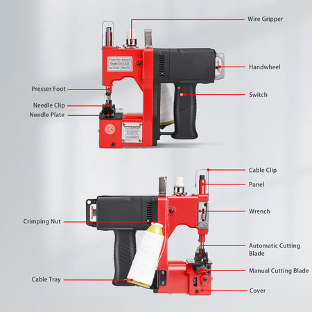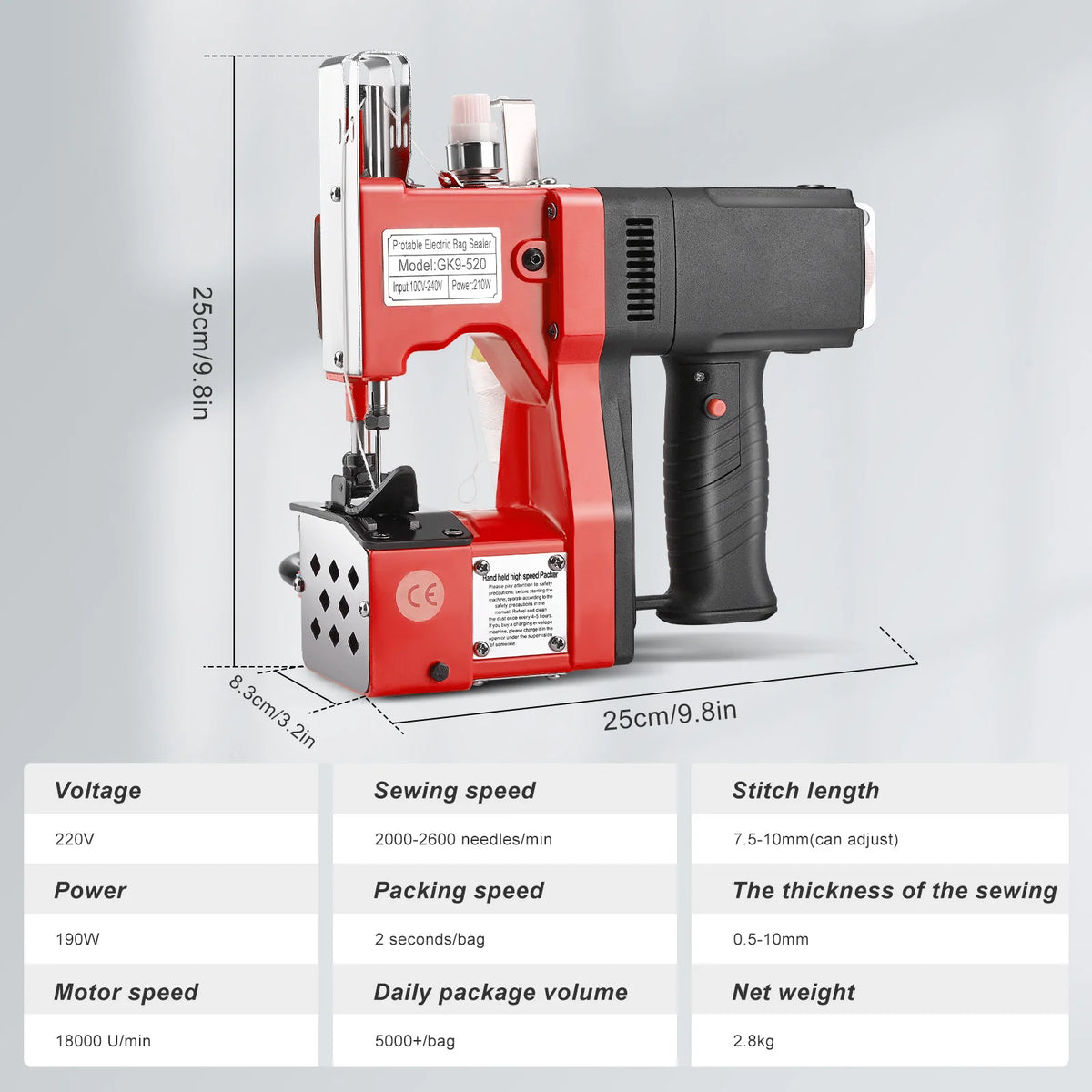 - Εφαρμογές: Σφράγιση σακουλών express, σακουλών λινάτσας, υφασμένων σακουλών PP, δερμάτινων συνθετικών σακουλών, σακουλών kraft