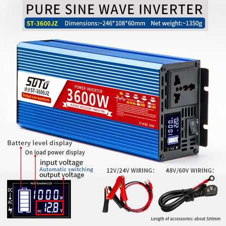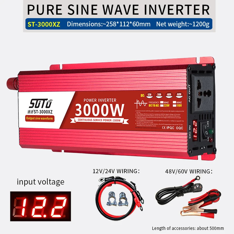 SUTU Ισχύς Καθαρού Ημιτόνου Μετατροπέας 12V σε 220V (1600W/2200W/3000W/4000W)