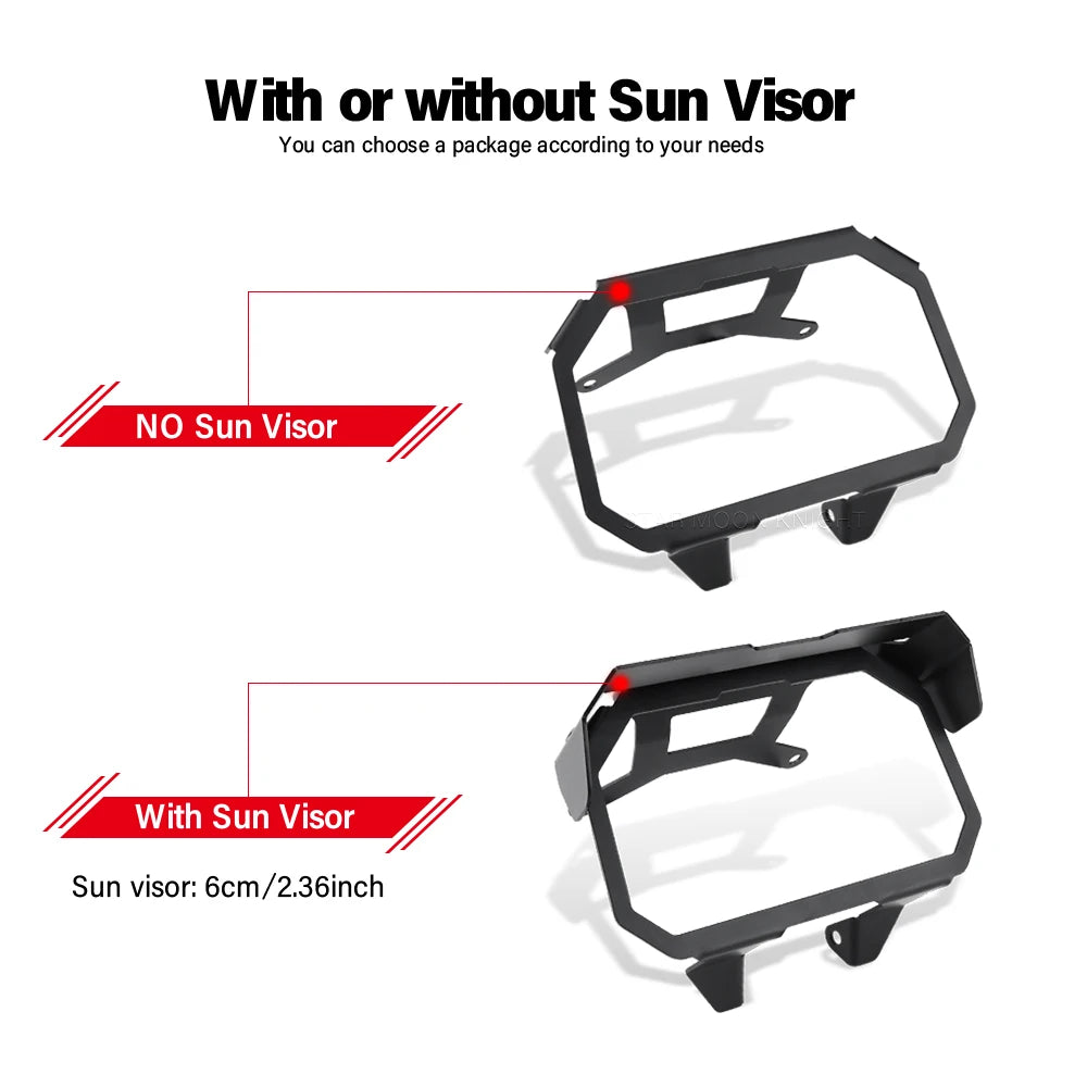 Επιλέξτε από πέντε βολικές διαμορφώσεις που ταιριάζουν στη ρύθμισή σας: 1) Μόνο πλαίσιο κατά της κλοπής 2) Πλαίσιο κατά της κλοπής + 1 τεμ. προστατευτικό οθόνης 3) Πλαίσιο κατά της κλοπής + ηλιοπροστασία 4) Πλαίσιο κατά της κλοπής + ηλιοπροστασία + 1 τεμ. προστατευτικό οθόνης 5) 1 τεμ. προστατευτικό οθόνης. Κάθε επιλογή προσφέρει αξιόπιστη προστασία με εύκολη εγκατάσταση και συντήρηση, ώστε να οδηγείτε με ηρεμία.
