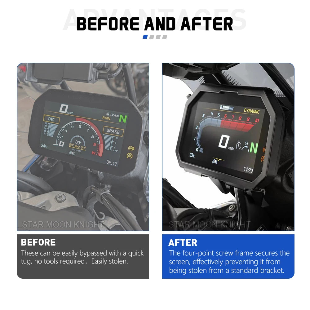 Προστατέψτε την οθόνη TFT της BMW R1300GS σας με την Ανοξείδωτη Ατσάλινη Προστασία Οθόνης κατά της Κλοπής από τη Star Moon Knight. Κατασκευασμένη ως ανθεκτική ασπίδα προστασίας από αντηλιά, αυτή η ανοξείδωτη ατσάλινη ασπίδα αποτρέπει την ευκαιριακή κλοπή χωρίς να θυσιάζει την αναγνωσιμότητα της οθόνης. Σχεδιασμένη για τη σειρά BMW R1300GS, ταιριάζει στα μοντέλα του 2023 και στα μοντέλα R1300GS Adventure του 2024, κρατώντας τον πίνακα οργάνων σας καθαρό και προστατευμένο εν κινήσει.