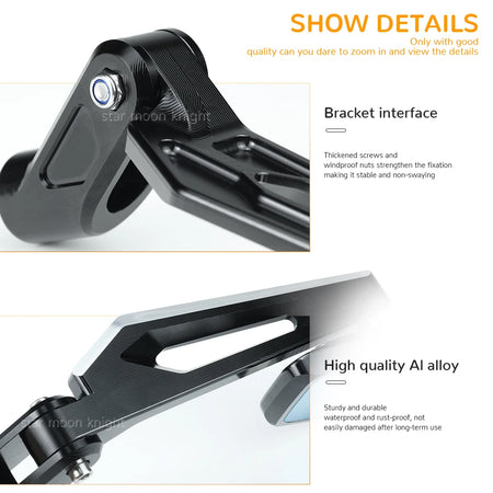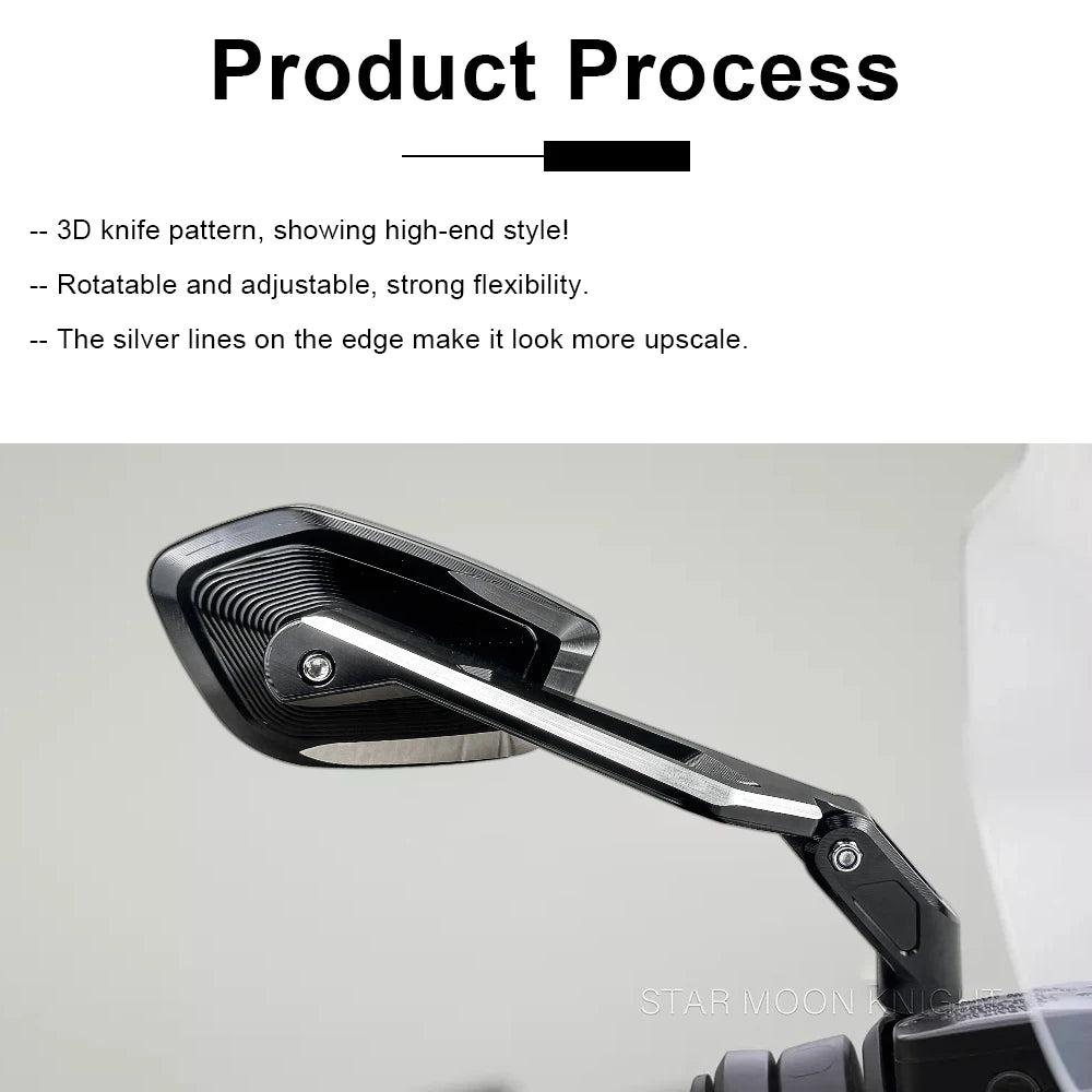 Αναβαθμίστε την οδήγησή σας με τον Περιστρεφόμενο Αλουμινένιο Καθρέφτη Οπισθοπορείας για Yamaha Tracer 900 GT και BMW C400GT. Κατασκευασμένος από ανθεκτικό κράμα αλουμινίου, αυτός ο καθρέφτης υψηλής ευκρίνειας προσφέρει καθαρή θέα της κυκλοφορίας πίσω σας, βοηθώντας σας να αντιδράσετε γρήγορα και να οδηγείτε με μεγαλύτερη αυτοπεποίθηση. Σχεδιασμένος ειδικά για supersport μοτοσυκλέτες, συνδυάζει μια σταθερή βάση στήριξης με έναν κινητό κάτοχο γυαλιού. Μια απλή περιστροφή ευθυγραμμίζει τον καθρέφτη με ακρίβεια, και όταν κλείνει, η κατασκευή σχηματίζει μια αεροδυναμική επιφάνεια για να διατηρεί την αεροδυναμική απόδοση ενώ διατηρεί το κομψό προφίλ της μοτοσυκλέτας.